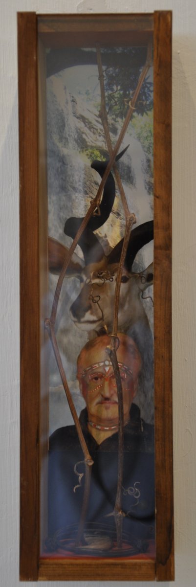 A kiállított alkotások ősi, gyakran rituális elemeket villantanak fel – obszidián pengét, kőzetformációkat, csontokat, törzsi maszkokat, démont, varázslót - mindezeket sajátos művészi megformálásban, egyszerre több műfajban is. A teremtett világ szeretete, szellemi mélysége és gazdagsága árad a művekből.