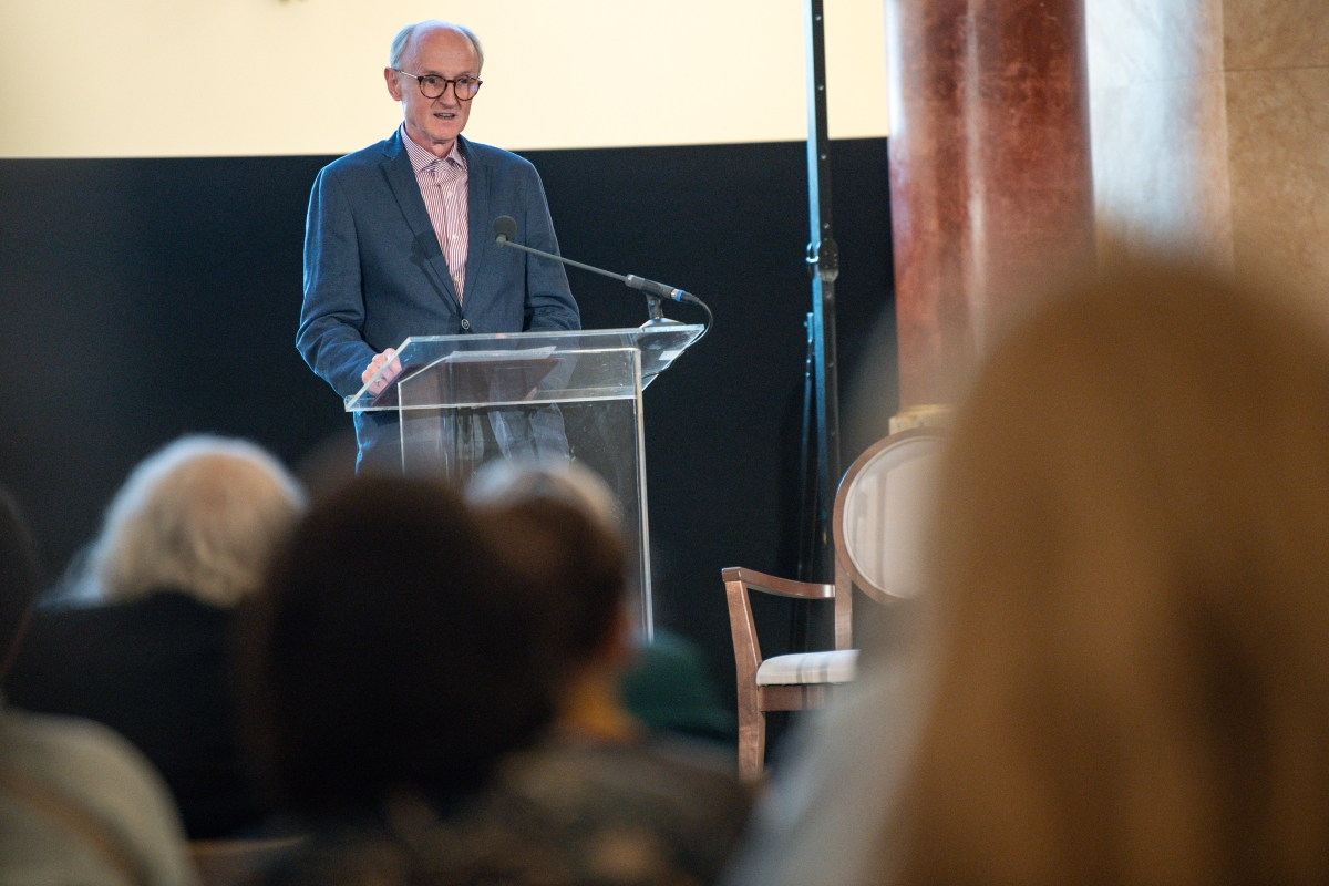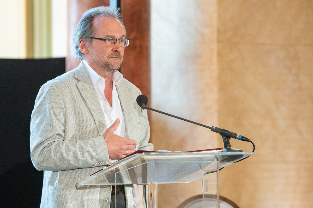 A díjátadón Turi Attila, az MMA elnöke, Kossuth-díjas építész köszöntötte a megjelenteket, akiknek figyelmébe ajánlotta a helyszínül szolgáló, Feszl Frigyes tervezte épületet. Makovecz Imréről szólva azt mondta, ő úgy fogalmazott, az építészet a Teremtés folytatása. Az építész, tette hozzá az MMA elnöke, „Isten alkotóműhelyének kisinasa, kit jó sorsa, szerencséje azzal áldott, hogy tehetsége, szorgalma és alázata által megfogta az angyal lábát. S ha van benne erő, nem ereszti." A díjjal kapcsolatban kiemelte: „Rendkívül fontosnak tartom, hogy a honi építészet színes szövetét ilyen díjak gazdagítsák, és az alkotókat lelkesítsék, a nemzet elé példát állítsanak. Fontos lenne, hogy a magyarországi építészeti elismerések -magán, építőipari, alapítványi, települési, köztestületi és állami díjak- átlátható, elismert portfolió építőelemek, jelzések legyenek. Nem pusztán díj-életpálya jelzőkövekként, de a társadalom számára egyértelmű, tartós értékeket jelző minőségként." (Turi Attila teljes beszéde elolvasható ide kattintva.)