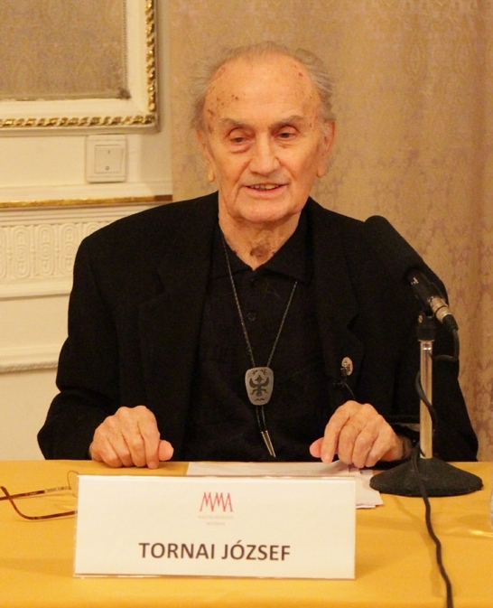 Tornai József (Dunaharaszti, 1927. október 9.) költő, író Díjak: József Attila-díj (1975), Magyar Köztársasági Érdemrend kiskeresztje (1997), Arany János-díj (1998), Babérkoszorú-díj (2001), MAOE-nagydíj (2007), Balassi Bálint-emlékkard (2012), Magyar Érdemrend tisztikeresztje (2012), Prima-díj (2012), Kossuth-díj (2013) Írói alapelve, hogy a XX. században is a modern és az ősi egységet kell felmutatni. Lírájára az avantgárd látásmód, a szürreális képalkotás, a gondolatritmus jellemzők. Első verses kötete, a Paradicsommadár 1959-ben jelent meg. Az ezt követő második verseskönyv, az 1962-ben megjelenő Égig érő föld a költő szavai szerint már magán viselte a teljes művészi életműre jellemző legfontosabb téma- és stílusjegyeket. A harmonikus világkép hiánya határozta meg a Kiszakadva (1972) című kötet verseit. A Naptánc-ban (1975) a filozofikus epikus költeménnyel kísérletezett. A Veres Péter-énekek-ben (1981) a siratókra emlékeztető hang szólal meg. A többszemélyes én (1982) írásakor arra döbbent rá, hogy az emberről leváló szerepek önálló életet élnek. |