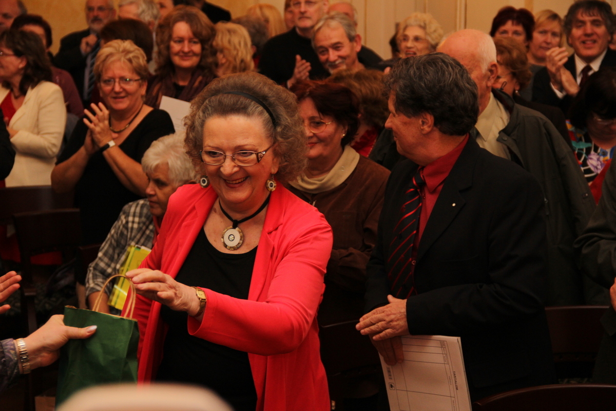 Az írónőt felköszöntötte E. Csorba Csilla, a PIM főigazgatója is, aki a Csaba a téren kéziratának másolatát ajándékozta a születésnaposnak. E. Törley Mária szobrászművész pedig egy szárnyas csigát ábrázoló szoborral köszöntötte a művészt.
