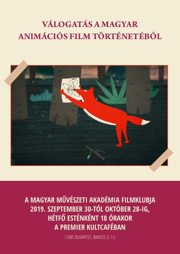 A Magyar Művészeti Akadémia Film- és Fotóművészeti Tagozatának filmklubja, Válogatás a magyar animációs film történetéből címmel a tavaly őszi 10 és az idei 15 estén át bőséges betekintést nyújt, a teljesség igénye nélkül, a hazai animáció kincsestárába. A szeptember 30-án a harmadik, befejező blokkal folytatódó sorozat (vetítések hétfő esténként, 18 órakor a Premier Kultcafé moziteremben) filmösszeállításából könnyen érthetővé válik, miért mondható olyan színesnek, sokfélének a magyar animáció. Láthatunk példákat a fekete humor és az ornamentális stílus mesterműveire, s feltárul a vidéki műhelyek – a Kecskemétfilm és a pécsi stúdió – filmtermésének gazdagsága is. Összeállításunk a magyar amatőrfilmek mellett a kortárs animáció jelenségeit is felöleli, az új alkotói nemzedék nagy sikert arató munkáitól kezdve a számítógépes animáció hazai eredményeiig. A tavaszi 10 alkalmat ősszel további 5 hétfő esti vetítés követi.A sorozat házigazdája A magyar animációs film: intézmény- és formatörténeti közelítések és A kecskeméti animációs film című kötetek szerzője, dr. Varga Zoltán. Az előadások beszélgetéssel fejeződnek be, amelyre meghívjuk az aznapi filmek egyik alkotóját vagy szakértőjét.