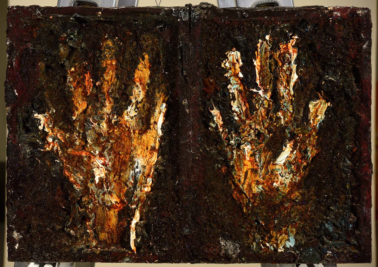 Baksai József: Grál ▪ olaj, fa doboz ▪ 27×38 cm
