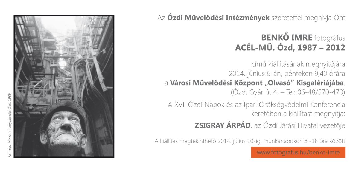 Június 6-án nyílik és július 10-ig látogatható Benkő Imre ACÉL-MŰ. Ózd 1987–2012 című fotókiállítása az Ózd Városi Művelődési Központban.