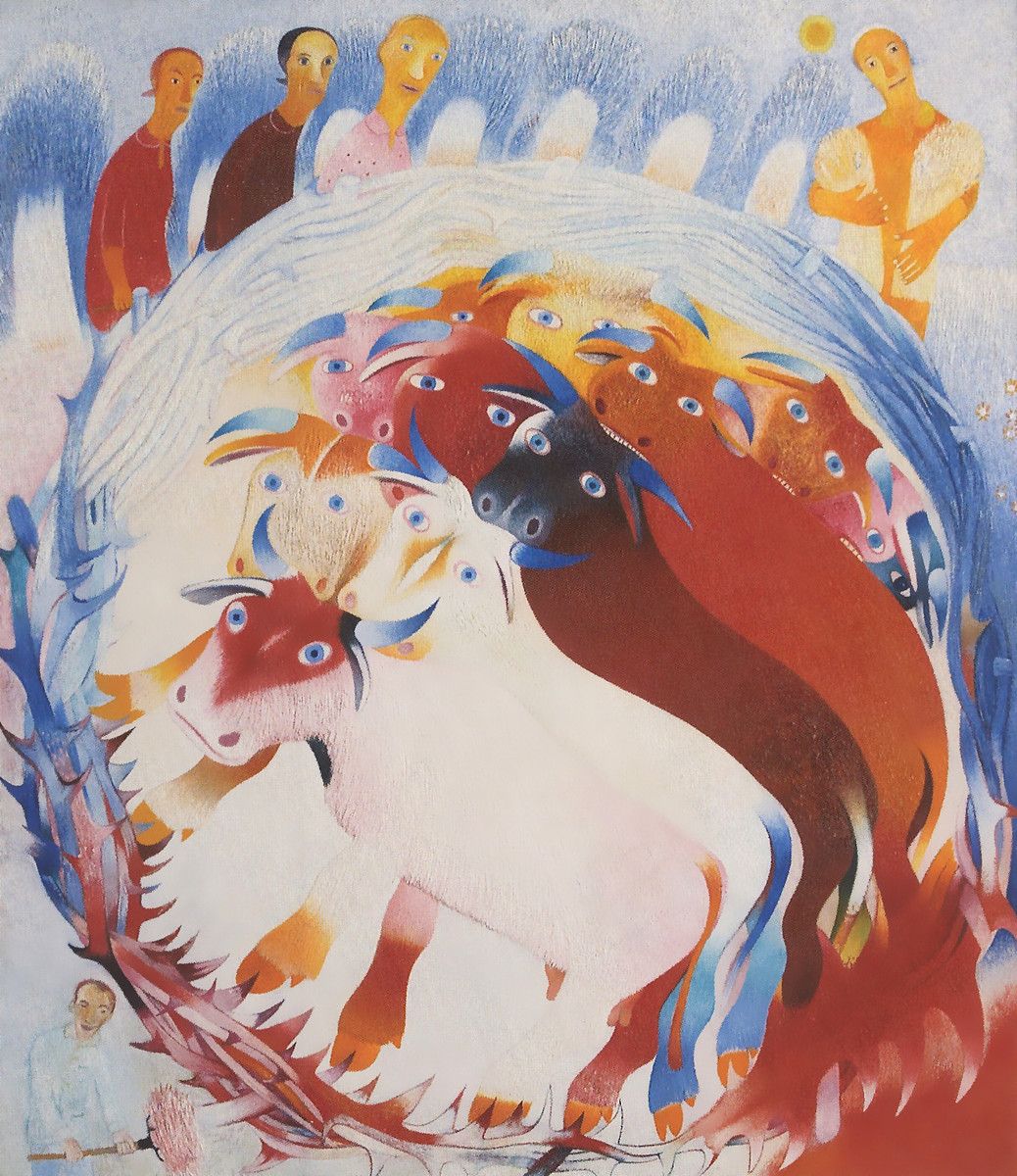 Emblematikus művek jelennek mintegy négy évtized munkáiból: A halász felesége és a hal fia, „Nyitva van az aranykapu…", Táltos boronával, Vetésforgó, Rongyszőnyeg, Macska a vasúti sínen – más számára talán fel sem tűnő, mert többnyire jelentéktelennek tetsző témák, noha súlyos történetek. Nem keresi témáit, mert kéznél levőként találja meg őket. A természet, az élő világ által inspirált benyomások képein mint reflexiók, mint belülről fakadó üzenetek hordozói jelennek meg. Az identifikáció, a dolgokkal és lényekkel való azonosulás, együttérzés, a sorsátérzés mintegy fundamentuma e művészetnek.
