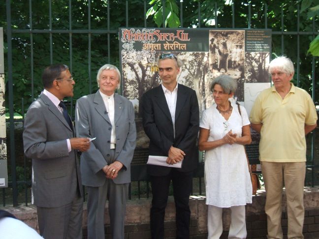 A Nemzeti Múzeum kerítésén elhelyezett, Amrita Sher-Gil életéről és festészetéről nyílt tablókiállítást június 21-én, pénteken délelőtt Fekete György, a Magyar Művészeti Akadémia elnöke nyitotta meg. Az eseményen ott volt és beszédet tartott Őexcellenciája Gauri Shankar Gupta, India magyarországi nagykövete, aki elárulta, hogy a kiállítást hamarosan Balatonfüreden is megtekinthetik majd az érdeklődő látogatók, sőt a magyar–indiai tervek között szerepel az is, hogy ez év végén az indiai ikon, vagy másképpen, az „indiai Frida Kahlo" életét és munkásságát tükröző óriásmolinó-sorozat Párizsban is megmutassa magát.
