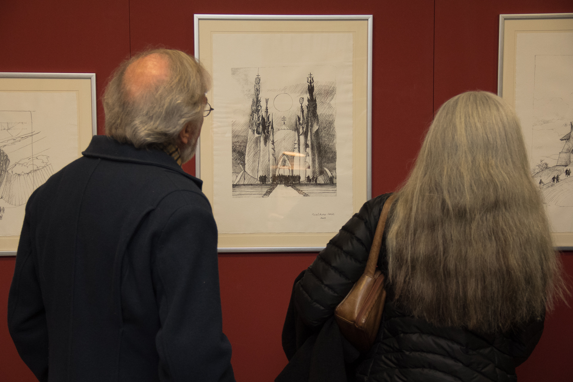 A kiállításon a 2003-ig készült rajzokat mutatják be, köztük épület-, ház-, templomterveket és tájképeket. Eredetileg ezek a munkák egy mappába készültek és egyedivé az tette őket, hogy Makovecz Imre valamennyit aláírta – mondta el Csernyus Lőrinc.