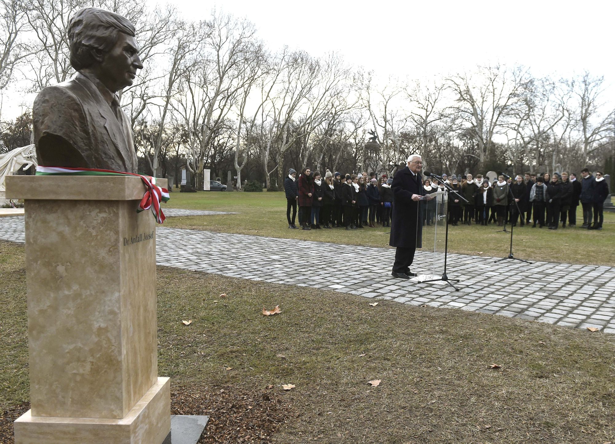 A mellszobrot – Domonkos Béla alkotását – Antall Klára, Antall József özvegye és Antall Péter, az egykori miniszterelnök fia leplezte le, majd a megemlékezés résztvevői megkoszorúzták az emlékművet.