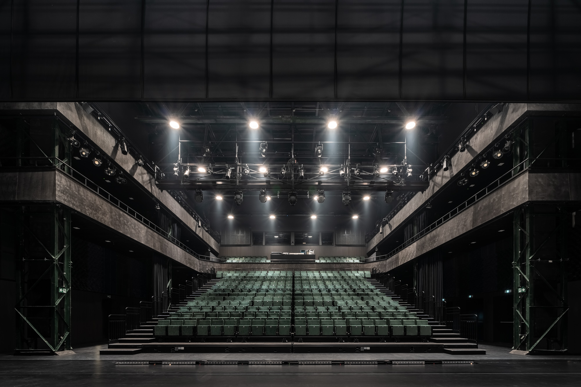 Orlovits Balázs építész elmondta, az előtér kettős funkciónak tesz eleget, itt találkozik a park az egykori ipari épülettel, a szabadidős tevékenység a kultúrával. A pavilonszerű előcsarnok ezért nyitott, kávézót is magába foglaló közösségi térként fog működni a park látogatói számára. Az épület központi helyszíne a korábbi stúdiótérből átépített 368 fős, dinamikusan alakítható mobil nézőtérrel ellátott nagyterem, amelyben egy 16 méterszer 24 méteres színpadot alakítottak ki. Az épületben emellett helyet kapott két próbaterem, egy oktatási, rekreációs programokat befogadni képes kamaraterem, egy hangstúdió, valamint a hozzájuk kapcsolódó kiszolgáló helyiségek és öltözők is.