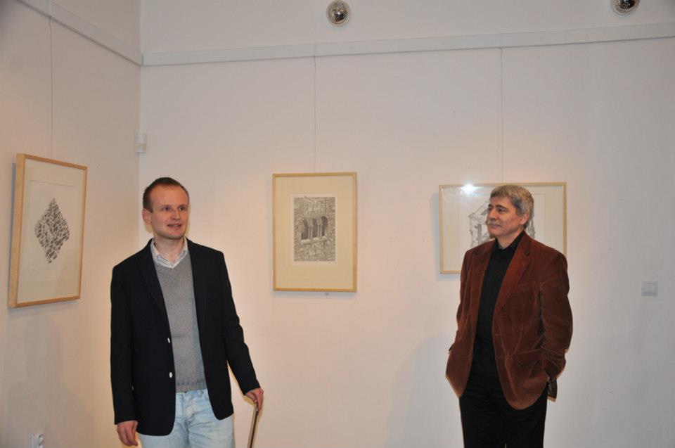 Csanda Máté és Orosz István a megnyitón (Forrás: Szlovákiai Magyar Képzőművészeti Fórum)