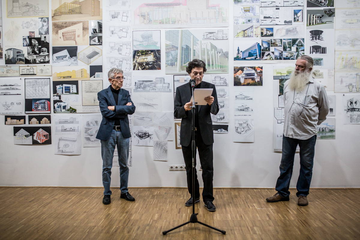 A kiállítást Balázs Mihály Kossuth- és Ybl-díjas építész, a Magyar Művészeti Akadémia tagja nyitotta meg, személyes gondolatokkal köszöntve Bán Ferencet, kiemelve, hogy talán a hallgatás volna most a legtökéletesebb, szemlélni a kiállítás anyagát, elmerülni benne, együtt hallgatni Bán Ferenccel, aki egykor úgy fogalmazott, hogy az alkotás, maga az építészet nem tűri a fecsegést. Ezt követően egyfajta párhuzamot állított fel Alessandro Baricco Történt című regényének főhőse és a most kiállító Bán Ferenc között, vagyis hogy a mindkettejükre jellemző életörömöt, alkotási vágyat, az alkotás iránti csodálatot még a nehézségek, a hátráltató tényezők sem tudták kioltani. „Csak a csodát lásd, a letisztult, időt és teret átszelő gesztust, az ember kezét a kormányon, mely újrarajzolja az út nyomát és beteljesíti azt, és helyezd el a semmi közepén, indítsd be a motort, vágj neki, és körözz! Körözz addig, míg minden kanyar el nem tűnik, egyetlen, egyazon pontban kezdődő és végződő gesztussá nem zsugorodik, mely önmagába vész. Akkor meglátod majd a tökéletes kört, a zárt, és tökéletes kört. Az egész életed abban a körben, de a kör benned, az agyadban van, nem a valóságban, csak benned létezik." – idézett a regényből Balázs Mihály, majd személyes élményeiről beszélt, melyek Bán Ferenchez kötik, találkozásokról, beszélgetésekről, és a kiállítás anyagáról, az itt látható vázlatokról, tervekről, melyek így együtt az egész életmű elképesztő anyagának ugyan csak töredékei, de tökéletesen megmutatják, milyen hatalmas munka áll Bán Ferenc mögött. „Távolról tájképnek tűnik az egész, de külön-külön vizsgálva őket rájöhetünk, hogy a gondolkodás eszközei, gondolatok, melyeknek egyike sem öncélú grafika, az egyszeri és megismételhetetlen születés felidézésére alkalmas képek ezek. Az építészet képei sajátos beszélgetőpartnerek a tervezés folyamatában. Az, hogy nincsenek üveglap mögé préselve, természetes és barátságos helyzetet teremt; térhez jut a papír, akárcsak a rajzasztalon." Végül beszélt Szabó Levente könyvéről is, mely egyre inkább helyet követel magának a könyvespolcokon, a Terc Kiadó gondozásában, a Magyar Művészeti Akadémia és a Magyar Tudományos Akadémia támogatásával megjelent kétnyelvű album egy építészeti sorozat első darabja. A könyv igazi sajátja, hogy az építész művészetének metodikai, újszerű összegyűjtésén túl egy sajátos korrajz felvázolására is kísérletet tesz hazai és nemzetközi összefüggésekben. Egyszerre vizsgálja az építési kultúrát és annak társadalmi szerepét, a kritika és a reakció hatásait arra nézve. Az egész életmű bemutatására a könyv szerzőjének természetesen nem volt lehetősége, de az öt különálló rész a könyvben koherens egészet alkot – hangsúlyozta. Zárásként Bán Ferenc megköszönte Balázs Mihálynak a méltató szavakat, a jelenlévőknek, hogy ellátogattak a megnyitóra, kívánva, hogy élvezzék a kiállítás anyagát és Szabó Levente összefoglaló könyvét.