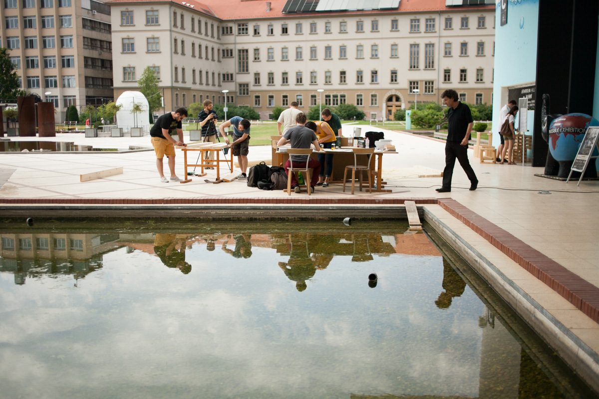 A délutáni blokkban a különféle építészképző intézmények (BME, MOME, PTE, NYME AMI, SZIE, SZE) hallgatói számoltak be nyári táboraikról egy igazi seregszemle formájában és abban a szellemben, amelyet Cseh András délelőtt így jellemzett: „tanulnunk kellene egymástól". A prezentációk előadói közül Pozsár Péter volt az, aki a részletek ismertetésén túl még nyomatékosabban hangsúlyozta a jelenlét fontosságát, Turi Attila pedig a valóságos tapasztalat jelentőségére hívta fel a figyelmet. Mint mondta, „fölstájgerolni a téglát a gleitnire – nincs ennél jobb iskola". Rámutatott arra, hogy a fő probléma, hogy „papírokat szolgáltatunk, és nem lakáskulcsot", és beszélt Peter Hübner stuttgarti építész és professzor közösségi tervezéseiről, amelyek által "lelkük" lesz az épületeknek. Markó Balázs azt hangsúlyozta, hogy építkezni két lábbal a földön állva kell, és hogy a kétszáz éve született Ybl Miklós is ezt a szemléletet képviselte, Herkli Mátyás pedig azt fejtette ki, hogy az építészet nem önmagában álló mesterség, hanem számos szakma, tudomány- és művészeti ág találkozási pontja.