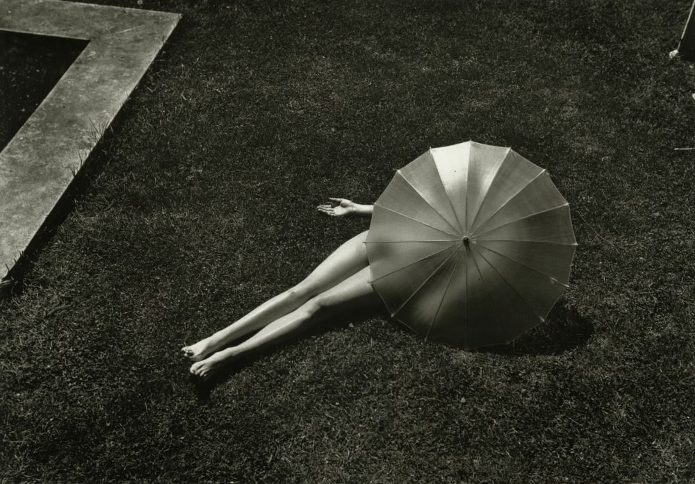 Martin MUNKÁCSI Akt napernyővel, Harper's Bazaar, 1935. július, zselatinos ezüst nagyítás / Nude with Parasol, Harper's Bazaar, July 1935, gelatin silver print Courtesy Howard Greenberg Gallery, New York ©Estate of Martin Munkácsi