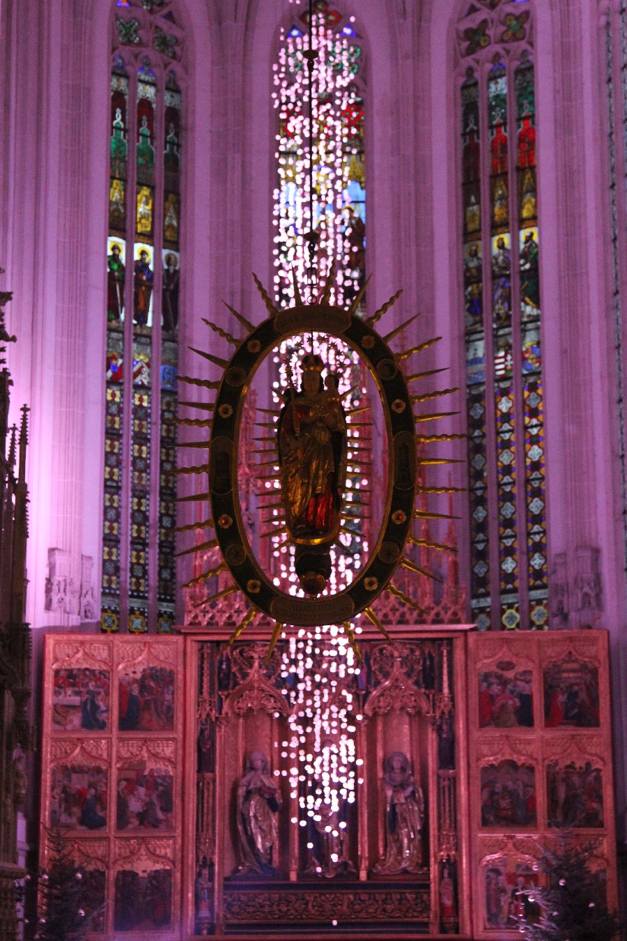 Éjszakára Kassa óvárosa nem csak hömpölygő tömeggel, hanem izgalmas fényekkel is megtelt. A Szent Erzsébet-dóm gótikus falait pulzáló, piros és zöld fényjátékkal díszítették, az épület mesebeli látványosságként csábította a járókelők fényképezőgépeit. A székesegyházba belépve egy, az oltár fölé függesztett monumentális hatású fényinstallációval szembesültünk, ami a kortárs képzőművészet eszközeivel teremtett mágikus hangulatot a szakrális térben.
