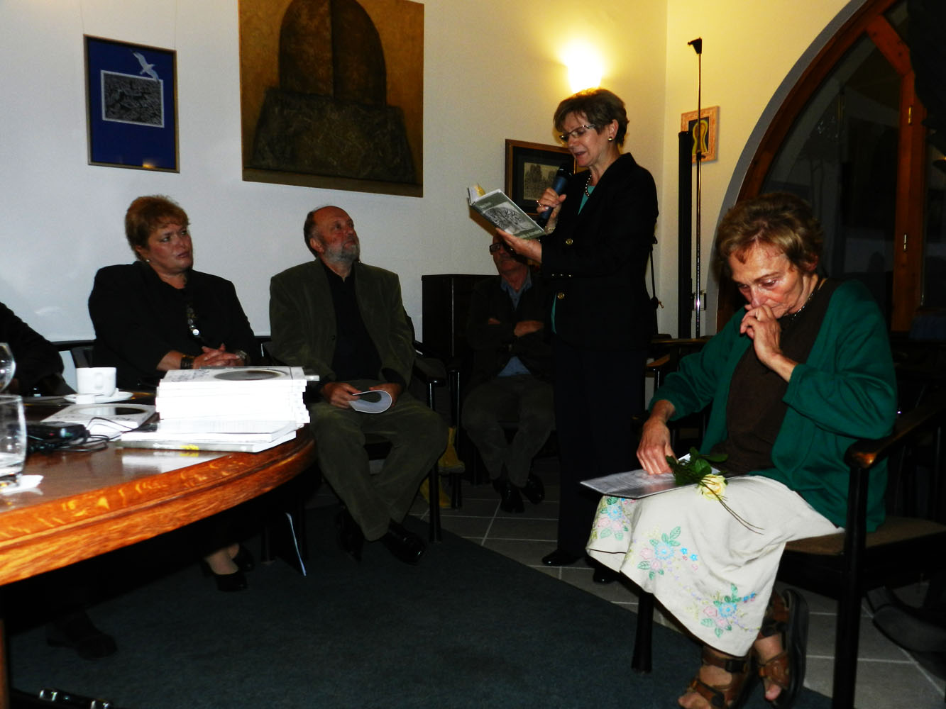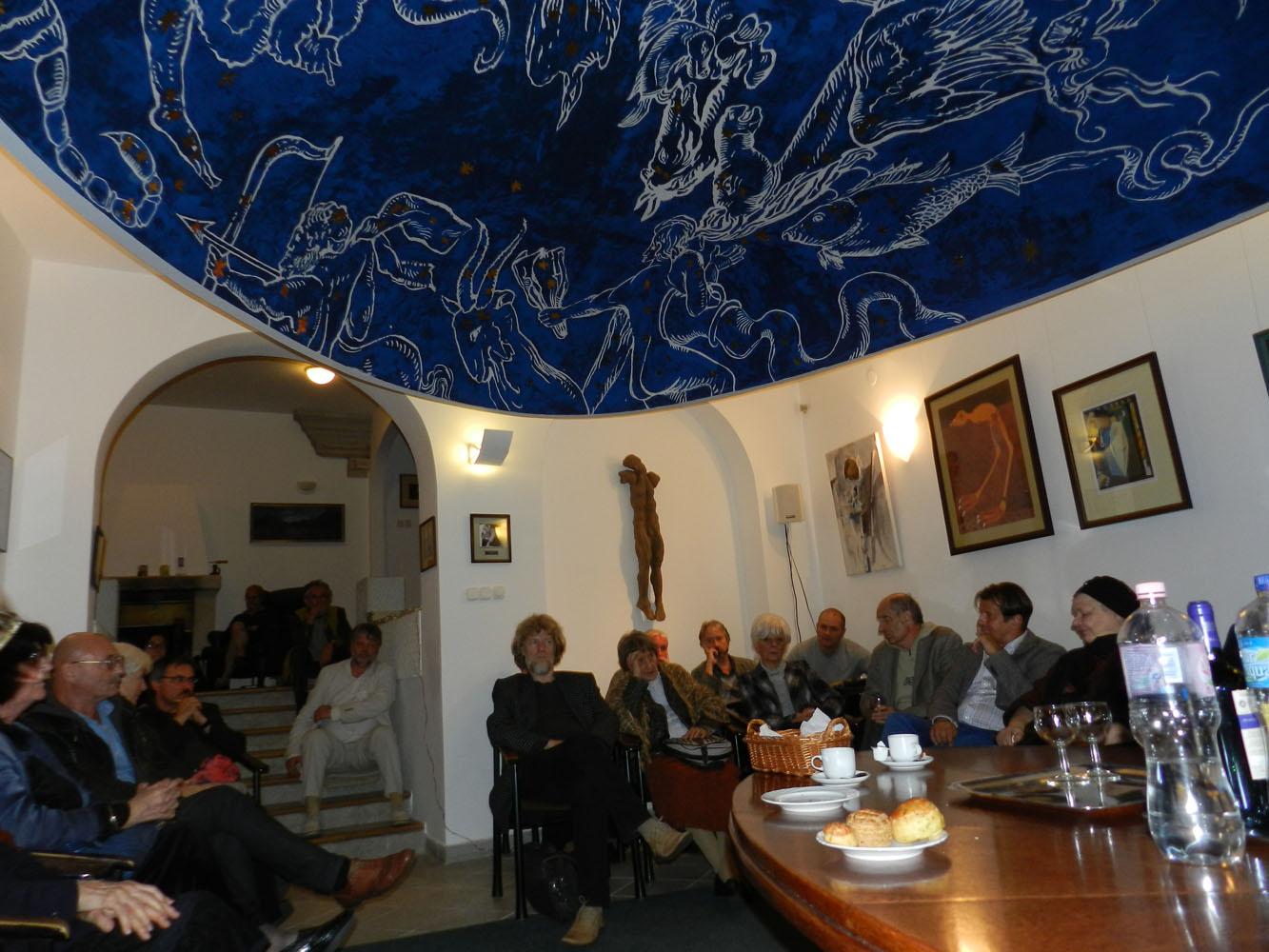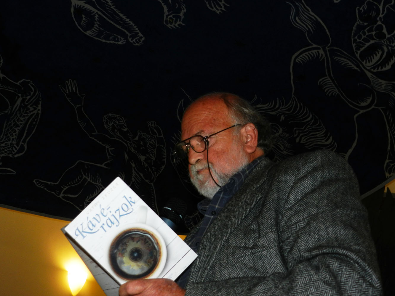 Hagyományteremtő módon verssel kezdődött az előadások idei szezonja. Nagy Gáspár (2007-ben elhunyt) költő Anyámmal hófehérülök című költeményét, archív felvételről maga a szerző szavalta el. A költő hangjait a Magyar Katolikus Rádió stúdiójában rögzítették, nem sokkal a halála előtt. [2013. szeptember 28-án Emlékházat avatnak Nagy Gáspár szülőfalujában, a Vas megyei Bérbaltaváron.] Vathy Zsuzsa Kávérajzok című könyvét ezt követően mutatta be Lelkes Péter formatervező, aki egyúttal az est háznagyi teendőit is ellátta. Lelkes Péter ugyanis személyes jó barátja volt annak a Cserny Józsefnek, aki a kötet főszereplőjének karakterét adta. Mint azt Lelkes Péter hangsúlyozta: a Kávérajzok nem Cserny József életét dolgozza fel. A 2009-ben elhunyt Kossuth-díjas formatervező „csupán" a kötet főszereplőjének karakter-inspirátora. A történet cselekménye ennek ellenére számos ponton Cserny József életével párhuzamosan fut. Lelkes Péter szerint a Kávérajzok „hiánypótló regény, hiszen a hazai formatervezés világát szépirodalmi mű még nem mutatta be".