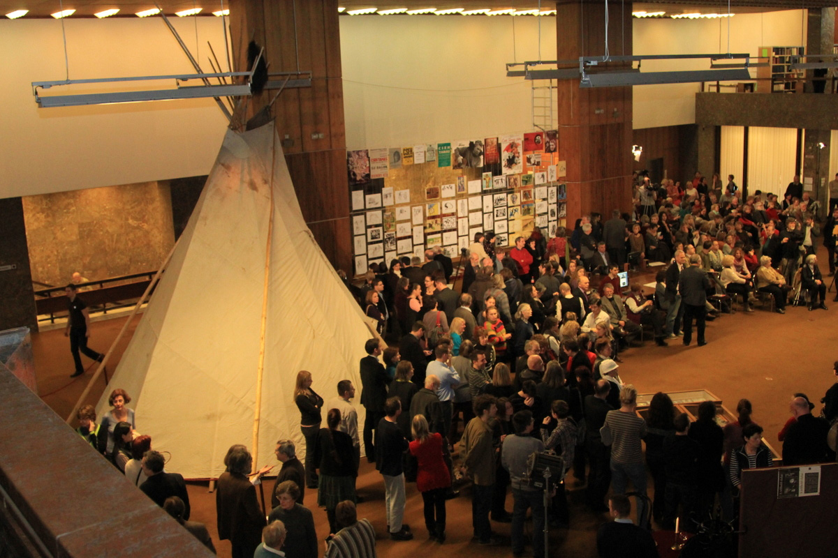 A könyvtár nyolcadik emeletén kiállították rajzait, hangszereit és használati tárgyait, indián eszközöket és egy indián tipit is, továbbá az archívum dokumentumait: kéziratokat, kottákat, eredeti lemezeket, plakátokat, fénykép és mozgókép installációkat. Koncert nélküle címmel hangversenyt tartottak barátai, Novák János, Márta István, Kecskeméti Gábor és Bornai Szilveszter.