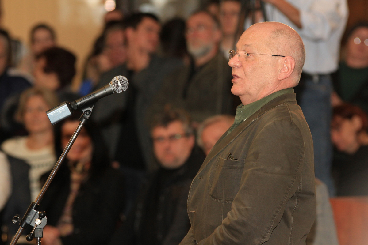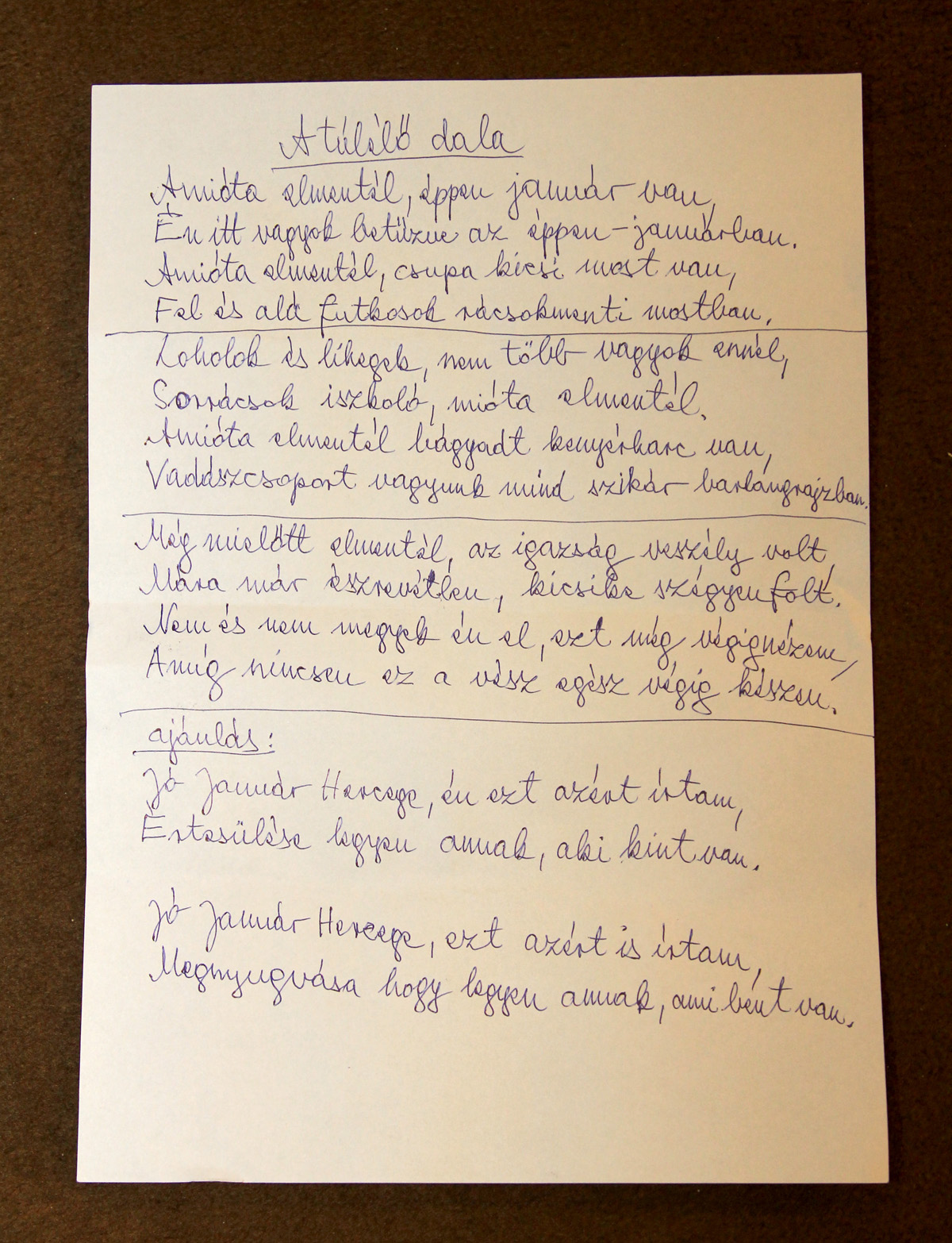 Bereményi Géza a közös alkotómunkára emlékezve elmondta, nem volt szokásuk, hogy megbeszéljék a tennivalókat, nem elemezték a közös munkáikat, és kerülték a tudálékoskodást. „Egy alkalommal mégis megpróbáltuk összefoglalni a kettőnk munkáját, beosztását. Tamás a következőt mondta: »Géza, valld be, hogy gyáva vagy.« Felütöttem a fejemet, és azt mondtam neki, hogy miért? Azt mondja, hogy »valld be, hogy még egy kocsmában sem mered elmondani azokat a dolgokat, amiket te beleírsz a dalszövegeidbe, és utána pedig engem küldesz ki, és én viszem el a balhét.« Erre azt mondtam, »igen, gyáva vagyok, viszont te bevallottad nekem, hogy csak évek múlva, több éves éneklés után érted meg azokat a dalszövegeket, amiket adok neked, tehát te meg tudatlan vagy.« Erre ő azt mondta, úgy van. Úgyhogy megállapodtunk abban, hogy egy gyáva és egy tudatlan ember együttműködéséből születnek ezek a dalok." Bereményi Dobai Péter búcsúztató versét (Túlélő dalok vagyunk), majd saját költeményét (A túlélő dala) olvasta fel.