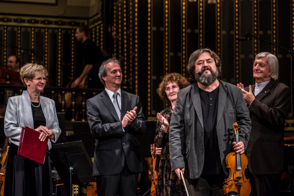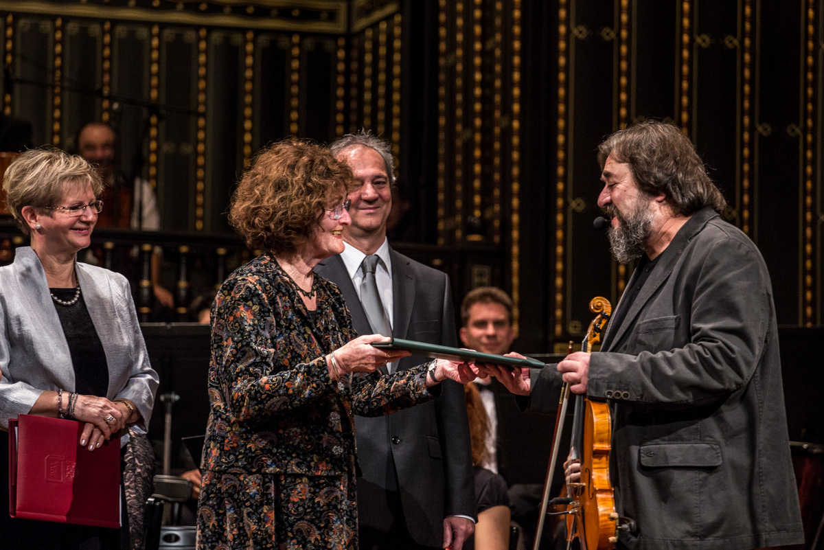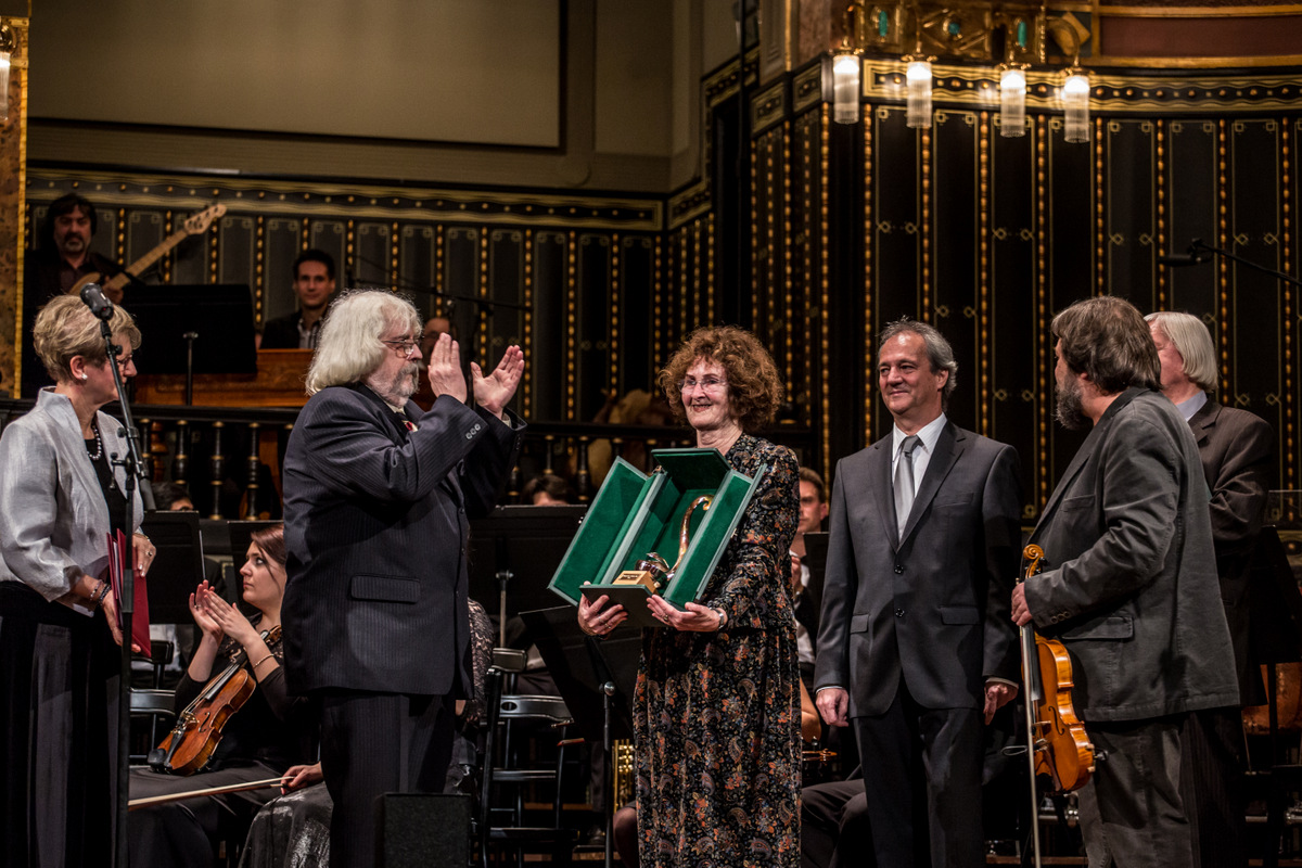 Makovecz Imre tudta, hogy létezik egy rejtett ajtó az ég és föld között, amely mindenki számára átjárható – fogalmazott az elismerést a Fellegajtó nyitogató című népdal előadásával megköszönő Kiss Ferenc, miután átvette a díjat Szabó Mariannétól, Makovecz Imre özvegyétől.