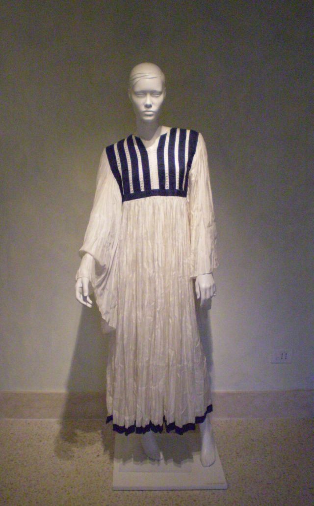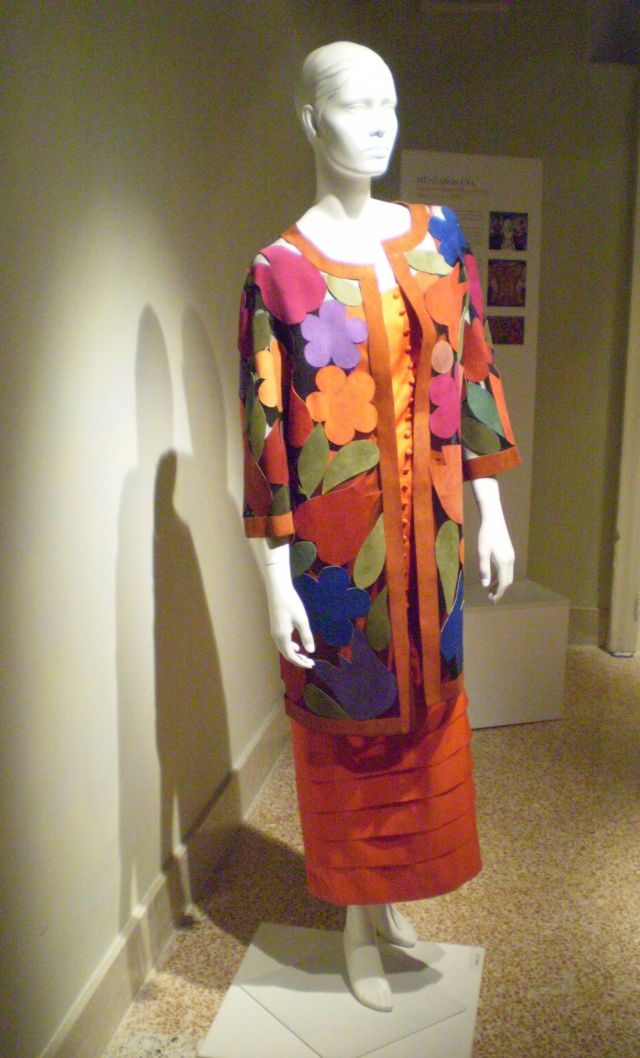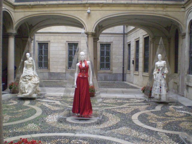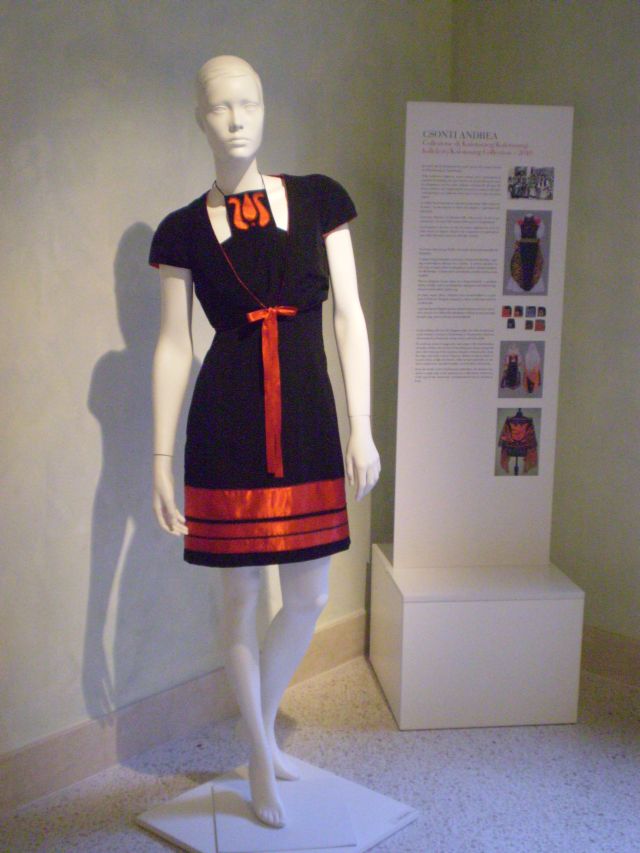 Öt nagyon attraktív estélyi ruha a palota belső udvarán, három méter magas plexi piramisokban látható, a többi öltözék a palota első emeletének tizenkét termében van kiállítva. Az utcai és alkalmi ruhák mellett háromnyelvű (olasz–angol–magyar) ismertető olvasható a tervezők szándékairól, az öltözékek forrásairól.