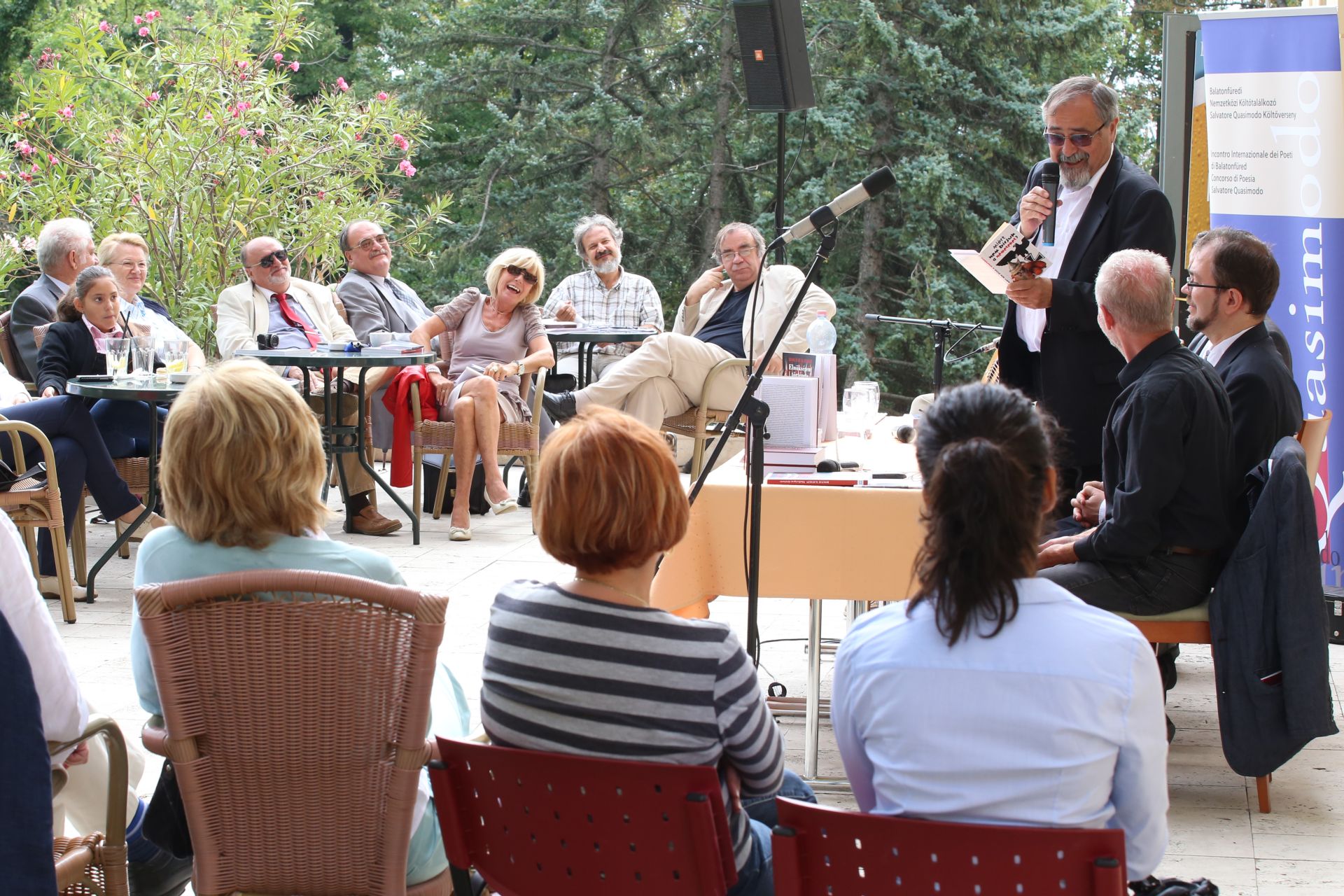 A XX. század egyik legjelentősebb olasz költőjének nevezte Quasimodot, akinek versei karcosak, sűrűek, mentesek minden fölösleges cicomától. Köszöntőt mondott még Halász János, az MMA Felügyelő Bizottságának elnöke.