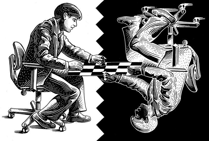„Lehetséges persze, hogy az összes sakkjátszma, amelyet valaha játszottak, része egy nagy, egyetemes partinak, a partik összességének, egy végtelen játszma­komp­le­xumnak, egy galakticseszkaja igrának. Minden játszma kapcsolatban áll az előzőleg játszottakkal, azok folyományává, kifejtésévé, vagy cáfolatává, visszhangjává, vagy magyarázatává, de legalábbis lábjegyzetévé változik az idők során. Így aztán a mi partink sem más, következmény és előzmény egyszerre, komponens egy szerkezetben, fogaskerék egy nagy játszmában, amelynek talán a létezéséről sem tudunk."