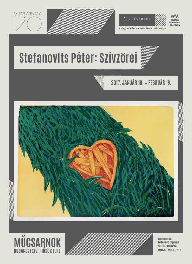 Szívzörej címmel látható kiállítás a Műcsarnokban, az MMA intézményében Stefanovits Péter képzőművész, az MMA rendes tagjának műveiből. A Műcsarnok Jutalomjáték gyűjtőcímmel emellett még két kiállítást rendez, a 30×30 | Kivonat az ezredforduló magyar képzőművészetéből 1985‒2015, valamint a Symposion Alapítvány a Magyarországi Művésztelepekért és a Magyarországi Alkotótelepek és Symposionok Társasága 25 éves tevékenységét és művésztelepi kapcsolatrendszerét bemutató kiállításokat.