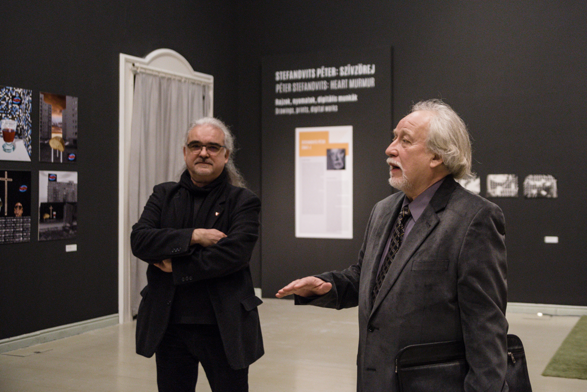 Műveinek nézője az érem mindkét oldalát szemlélve szembesül a bennük – bennünk – megjelenő emberi tulajdonságokkal, társadalmi ellentmondásokkal, közelebb jutva talán azok megjavításának, illetve feloldásának lehetőségéhez is. A kiállítás megnyitásaként egy performansz keretében „Négyszemközt" címmel Stefanovits Péter és Szurcsik József, a kiállítás kurátora, Munkácsy-díjas képzőművész, az MMA rendes tagjai beszélgettek.
