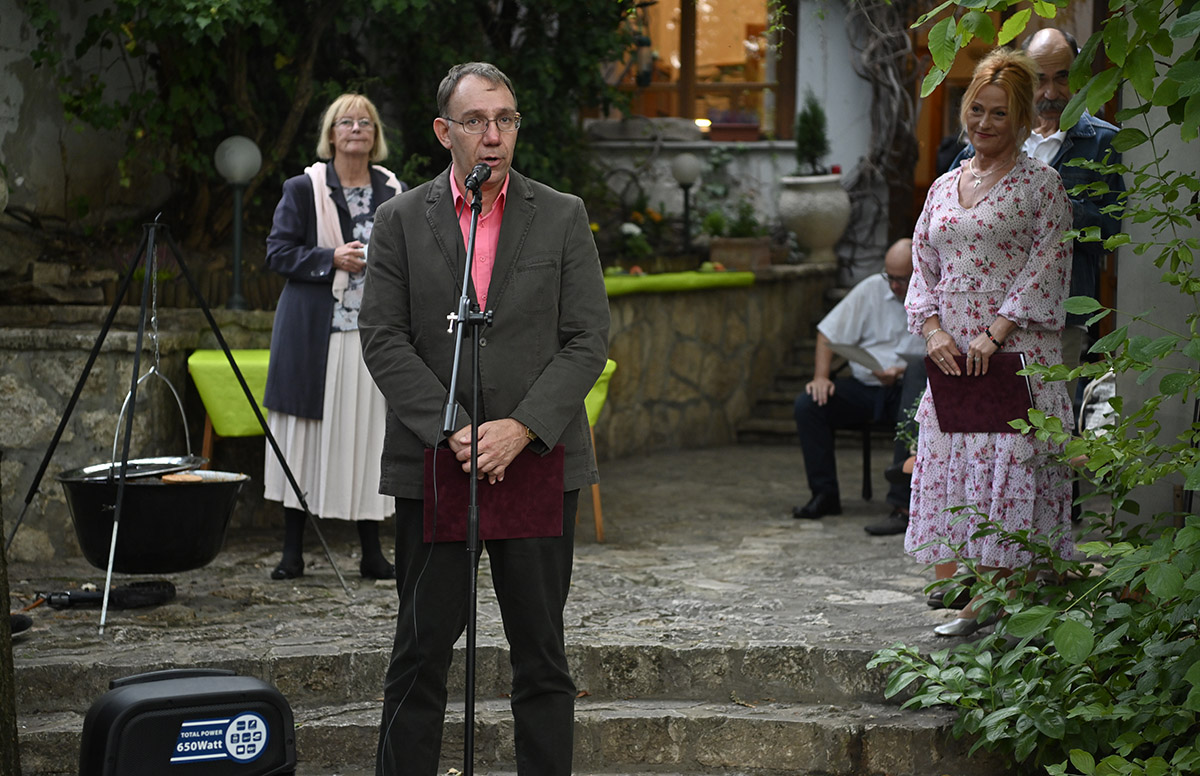 Köszöntő beszédében Borbély László író, szerkesztő az MMA Titkársága sajtóosztályának munkatársa felidézte a kilencvenes éveket, amikor Makovecz Imre építész művésztársaival közösen megalapította a köztestület elődjének tekinthető egyesületet Óbudán, az akkori Kecske utcában. A posztumusz tiszteleti tagok közül kiemelte a húsz éve elhunyt Gion Nándor írót. A hajdan volt magyar Délvidék „mesemondója", az utolsók közt hagyta el ősei földjét a '90-es évek háborús forgatagában.