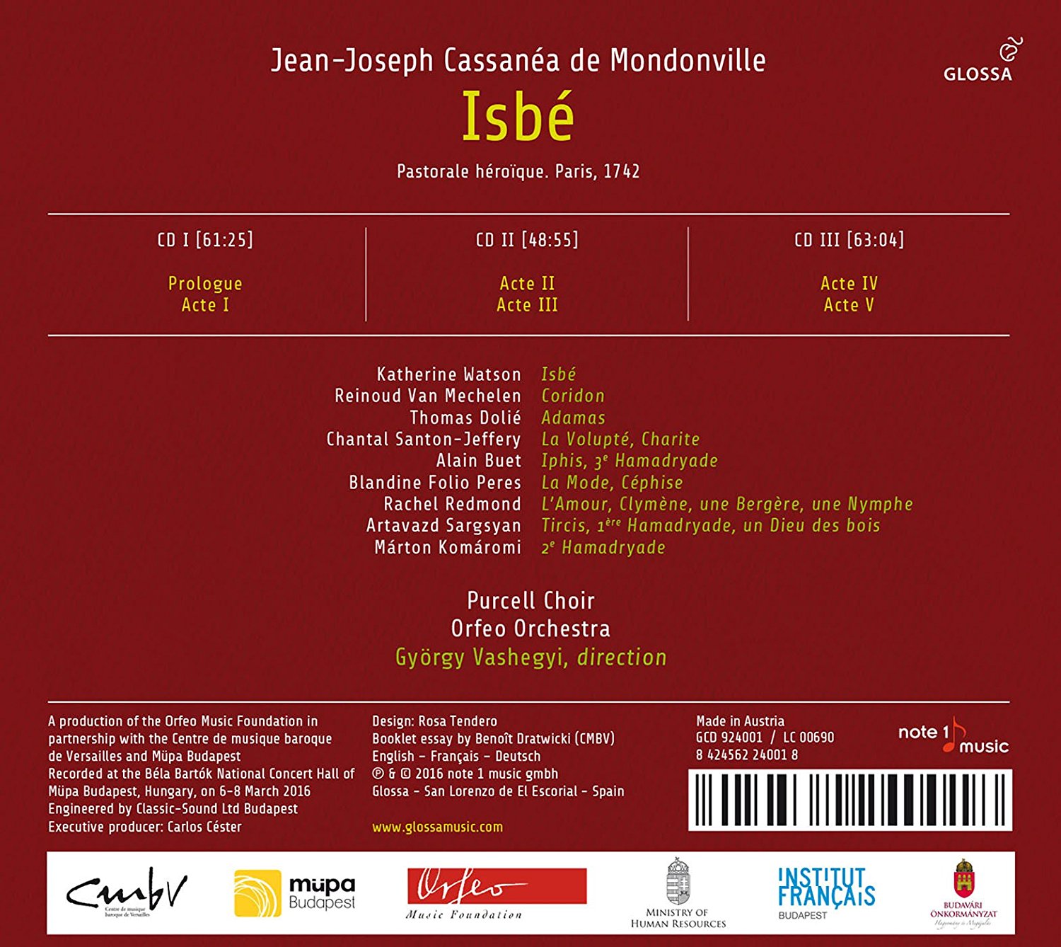 (Jean-Joseph Cassanéa de Mondonville: Isbé. Audio CD [3 db] Glossa, 2017)