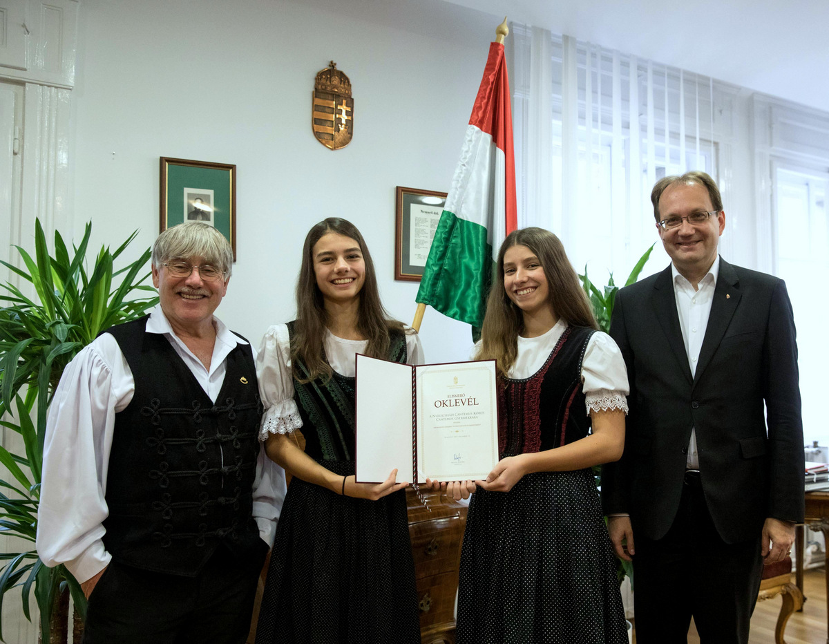 Balog Zoltán, az emberi erőforrások minisztere Szabó Dénes karnagynak, a nemzet művészének, az MMA rendes tagjának kiemelkedő szakmai teljesítményéért elismerő oklevelet adományozott, melyet dr. Hoppál Péter kultúráért felelős államtitkár adott át. A Szabó Dénes vezette Cantemus Gyermekkar legutóbb hat díjat hozott el a Lengyelországban októberben lezajlott Gaude Cantem nemzetközi versenyről.