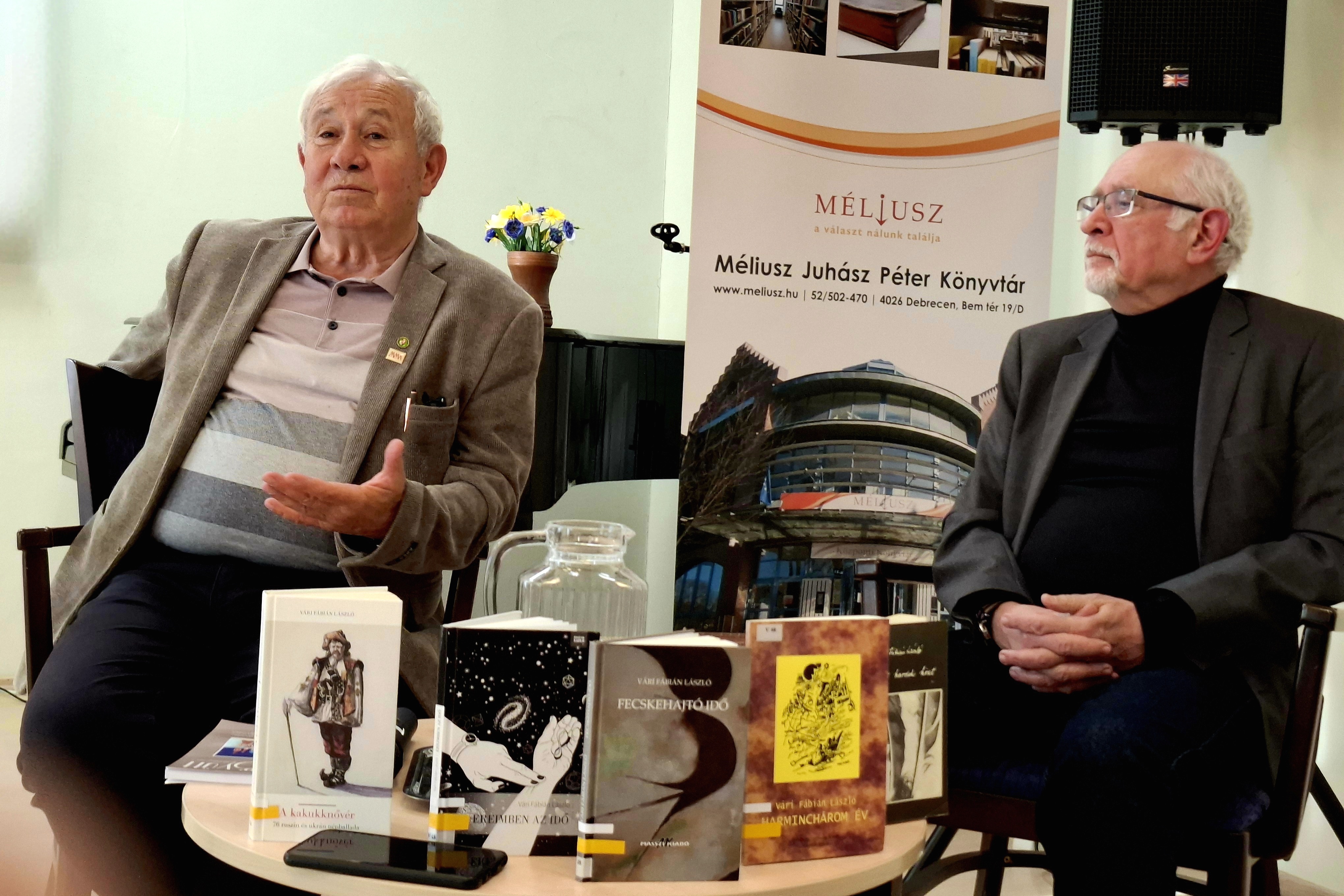 A Debreceni Költészeti Fesztivál keretében kiemelt vendégként köszöntötték Vári Fábián László Kossuth-díjas költőt, néprajztudóst, a Magyar Művészeti Akadémia Irodalmi Tagozatának vezetőjét 2025. április 10-én a Méliusz Juhász Péter Könyvtárban, akivel Jánosi Zoltán irodalomtörténész, az MMA levelező tagja beszélgetett.