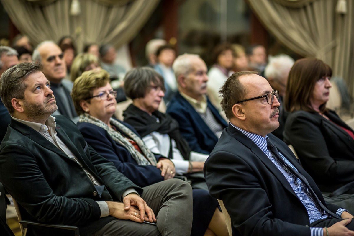 Kucsera Tamás Gergely, a Magyar Művészeti Akadémia főtitkára házigazdaként köszöntötte a megjelenteket, üdvözölte a könyvbemutató résztvevőit, majd beszélt a közösségi élményen keresztül gyakorolt erényről, melyet annak idején Bibó István is kiemelt fontosságúnak tekintett.