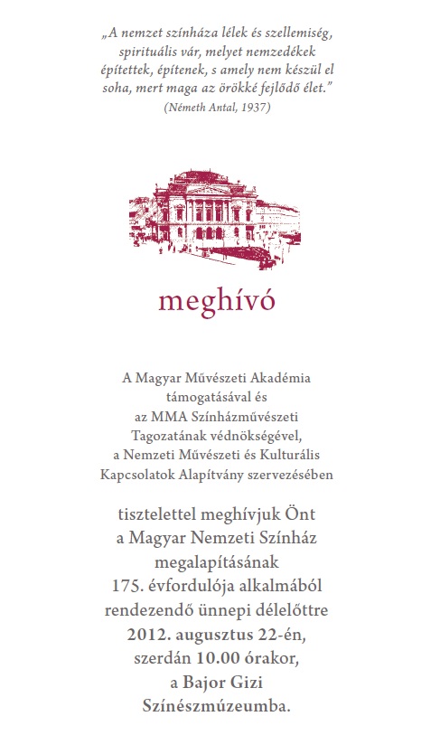 175 éve, 1837. augusztus 22-én nyitotta meg kapuit a Nemzeti Színház – akkor még Pesti Magyar Színház –, s ennek alkalmából megemlékezést tartott a Magyar Művészeti Akadémia.