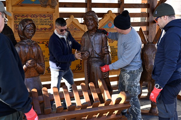 – A nemzet betlehemét idén közelebb építettük a kordonhoz, mert szeretnénk, hogy a látogatók még közelebb kerülhessenek a Jézus születési helyét megjelenítő faragványhoz. Ne csak nézzék, hanem át is éljék az örömhírt, miközben megállnak mellette, és felfedezik az apró részleteket – mondta Kékedi László – A nemzet betleheme a magyarság kézzel faragott lenyomata. A királyok között Szent László és IV. Béla látható, a pásztorok magyar pásztoremberek, Mária palóc viseletben áll a jászol mellett, József alföldi ruházatban. Idén kerámiákon is megmutatjuk, milyen gazdag a magyar népművészet.