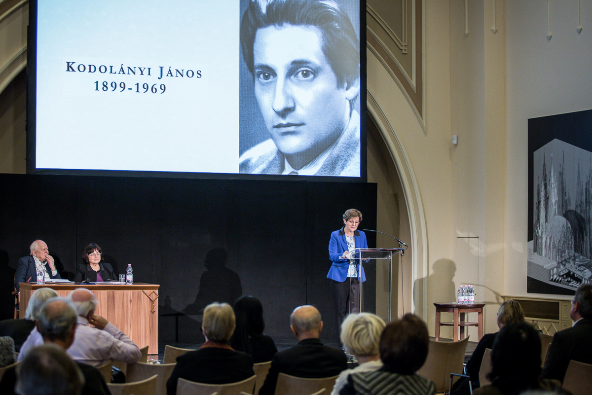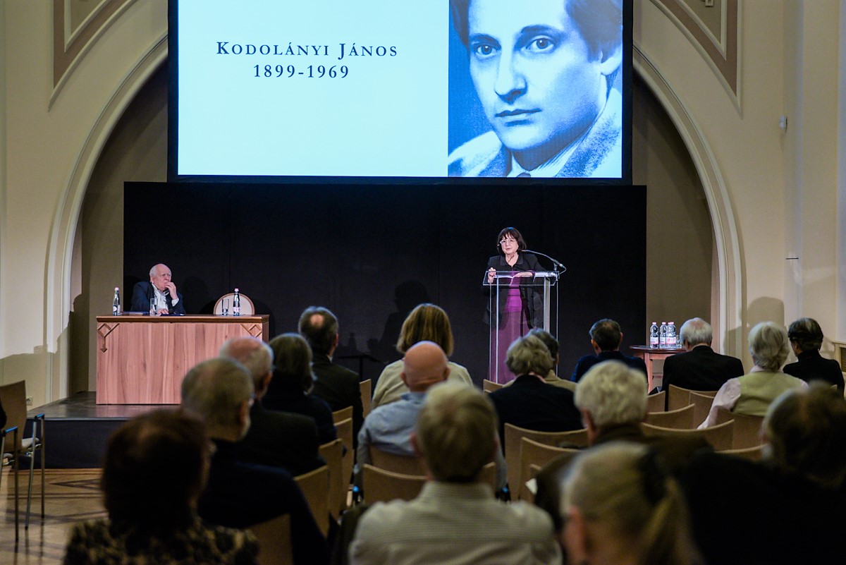 – Nagyon hálás vagyok, hogy a Magyar Művészeti Akadémia a nagybátyám kettős jubileumát így felkarolta. Gondolom ennek tanújele az is, hogy Fekete György, tiszteletbeli elnök nyitotta meg ezt az ülést. Nyilván a saját régi ragaszkodása is benne van Kodolányi János iránt, de a beszéd egy jelképes gesztus is volt. Idén ez már a harmadik rendezvény Kodolányival kapcsolatban. Az MMA Színházművészeti Tagozata Rátóti Zoltán rendezésében előadta a Zárt tárgyalás című nagyon fontos esszédrámáját, és néhány nappal ezelőtt ugyanitt a Pesti Vigadóban, a Tavaszi Irodalmi Gála keretében egy nagyon szép részlet hangzott el nagybátyám Én vagyok című művéből. Remélem, hogy elindul valami, mert hiszen ő idézi egyik levelében a régi kínai ősi mondást: „Ha egy kavicsot dobunk a tóba, akkor a világ már más, mint ami előtte volt." Most bedobtunk egy pár kavicsot és én remélem, hogy ez az életmű éppen az aktualitása miatt is ismét bekerül a mai magyar gondolkodás előterébe.