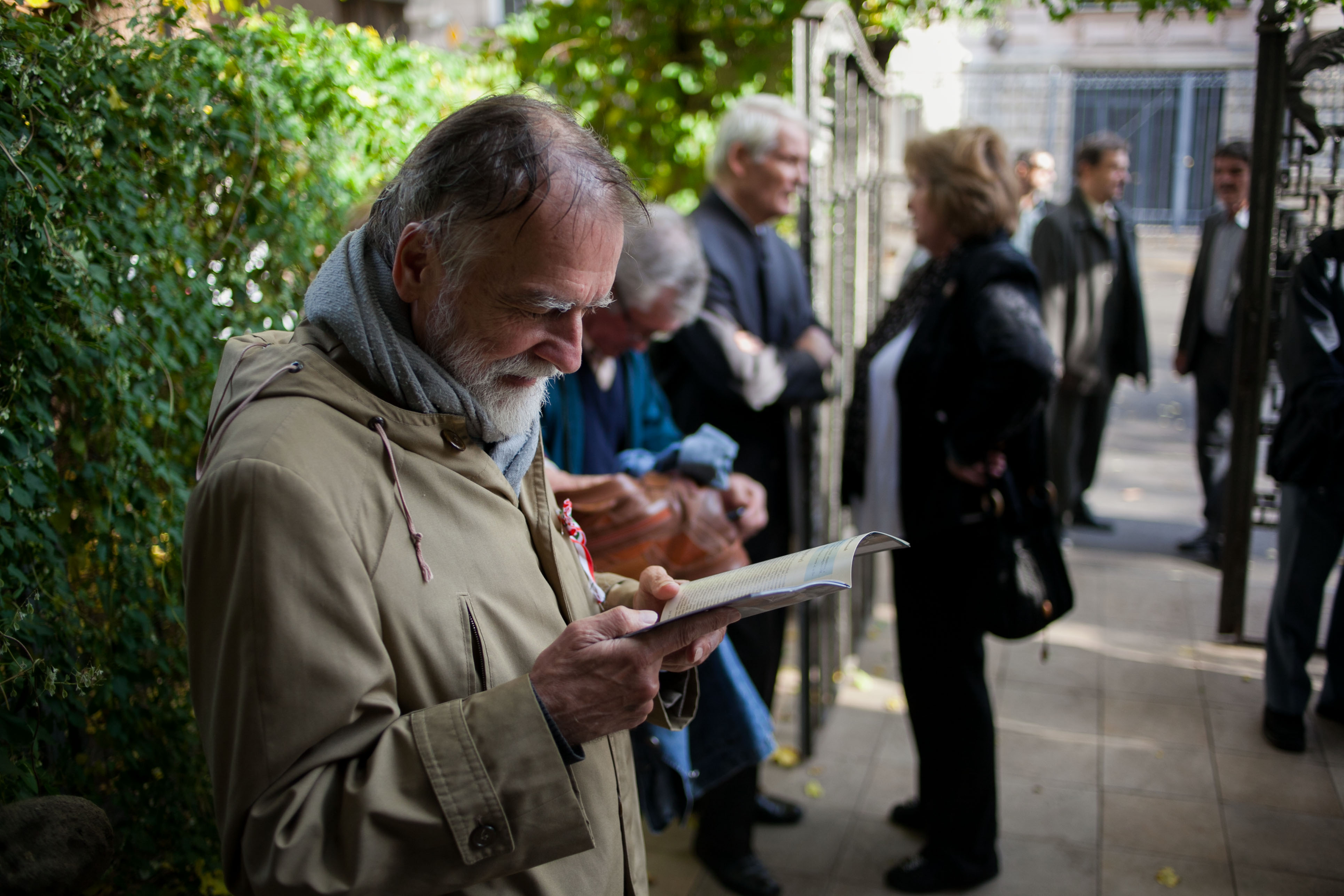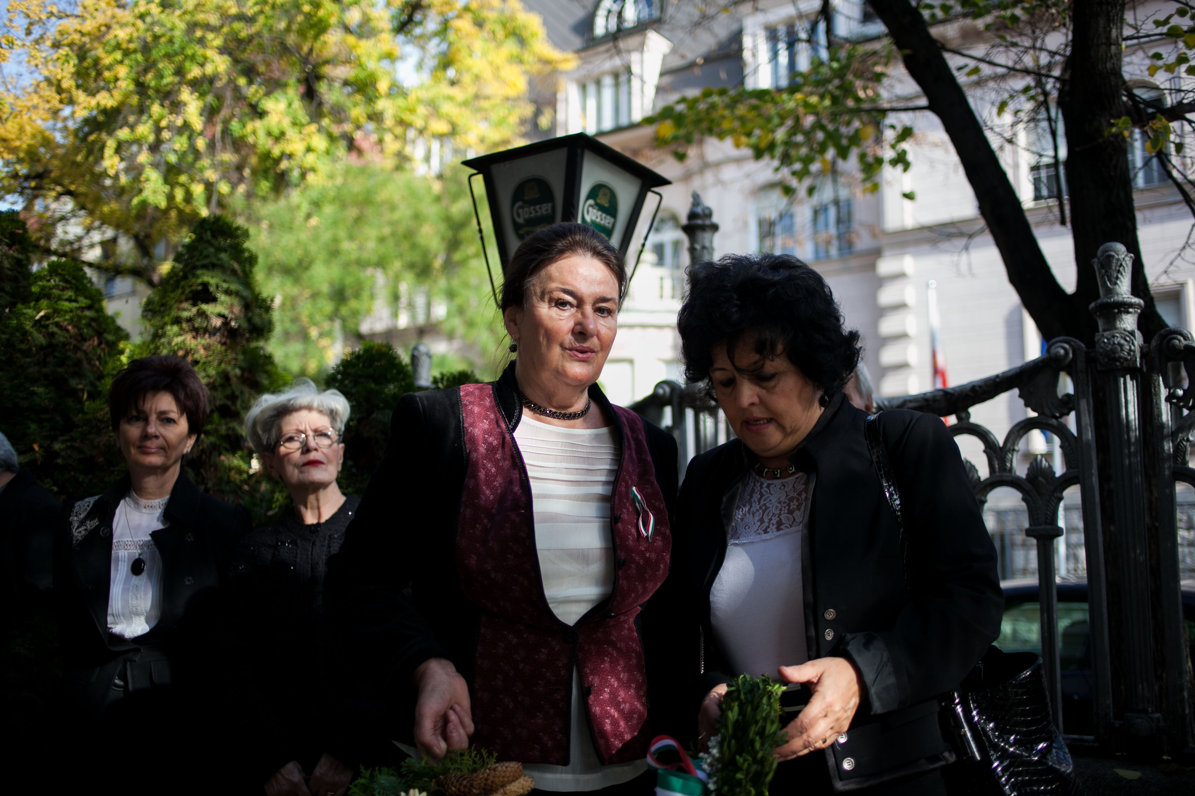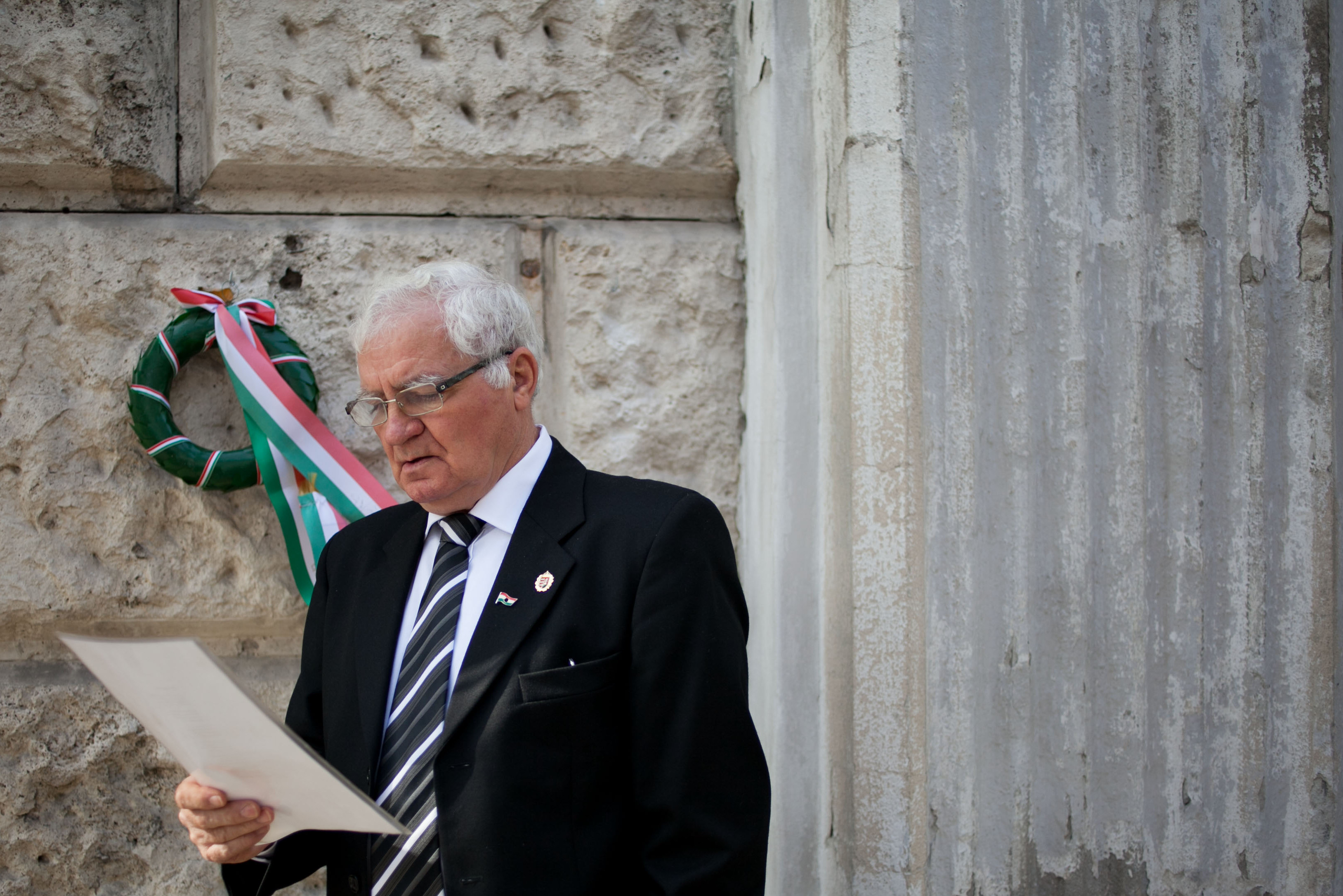 A megemlékezésen köszöntőt mondott Halász János, kultúráért felelős államtitkár, aki beszédében az 56-os események részleteiről, az írók megkerülhetetlen szerepéről, az emlékezés és a tettek fontosságáról, valamint Gérecz Attiláról szólt. Ezt követően Kiss Dénes Sugárzó októberünk című versét Szersény Gyula tolmácsolta az összegyűlteknek.  Koszorút helyezett el az az 56-os emléktáblánál Szentmártoni János, a Magyar Írószövetség elnöke; Halász János az Emberi Erőforrások Minisztériuma képviseletében; Ács Margit, a Magyar Művészeti Akadémia elnökségi tagja; Erős Kinga, a Széchenyi Irodalmi és Művészeti Akadémia részéről, Temesi Ferenc, a Magyar PEN Club alelnöke, E. Csorba Csilla, a Petőfi Irodalmi Múzeum igazgatója, valamint Mezey Katalin, a Magyar Írók Szakszervezetének képviselője.