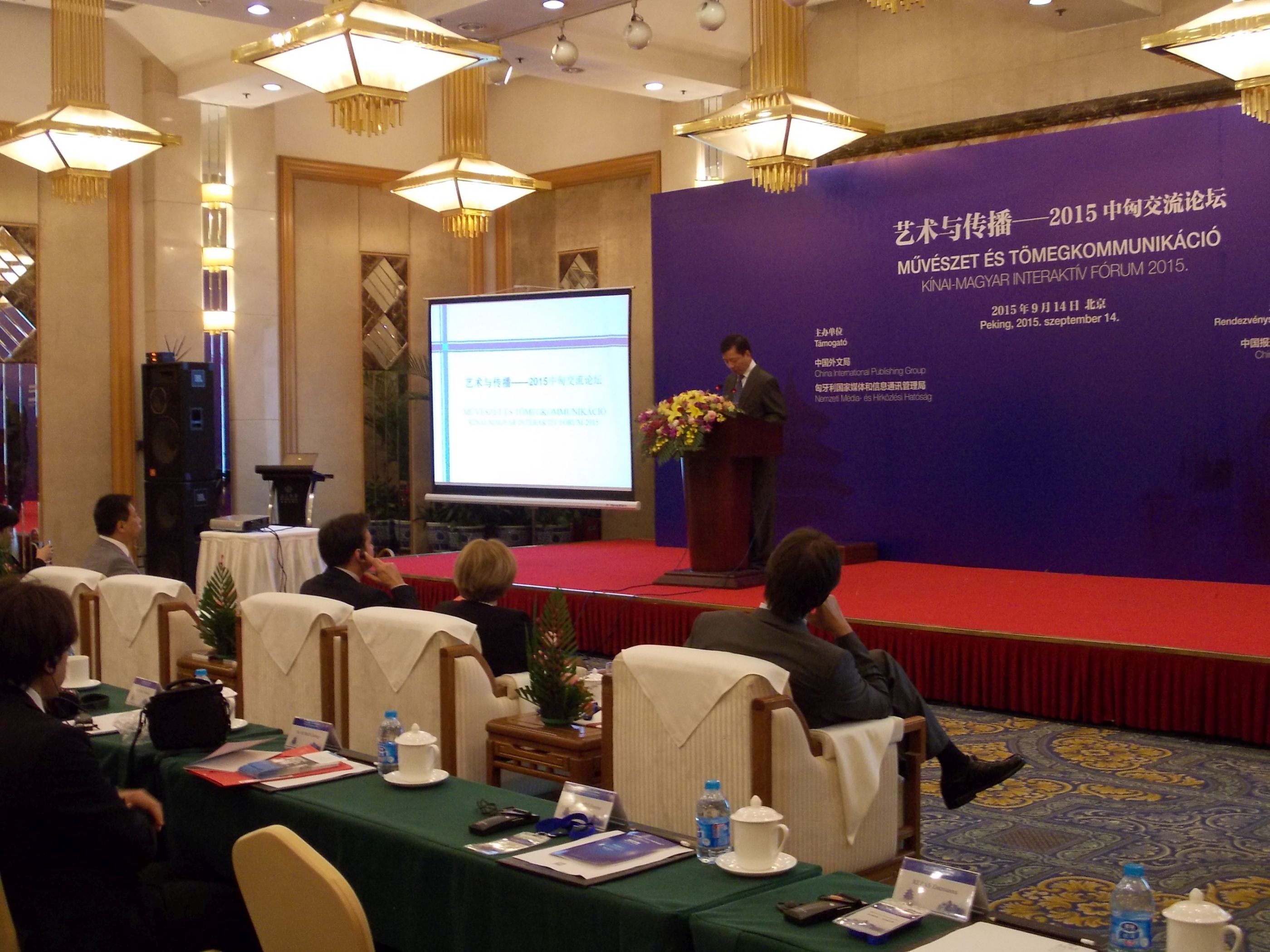 A Médiafórum nyitóelőadását magyar részről dr. Kollarik Tamás tartotta a Mecenatúra Programról és az audiovizuális támogatások rendszeréről, őt dr. Vass Ágnes Médiatanács tag követte a kiskorúak védelméről szóló hazai szabályozásokról és a klasszifikációs rendszerről, továbbá Taba Miklós, a Nemzeti Filmiroda vezetője a filmkészítőket megillető adókedvezményekről és egyéb támogatásokról. A „Művészet és telekommunikáció" című fórumon a délutáni szekció nyitó előadását dr. Kucsera Tamás Gergely tartotta, amelyen vetített képes előadással illusztrálva mutatta be a Magyar Művészeti Akadémia tevékenységét, feladatait, a kulturális közéletben betöltött szerepét, továbbá a kínai előadókra rezonálva elemezte a témához kötödő magyarországi és nemzetközi társadalmi és kulturális folyamatokat.