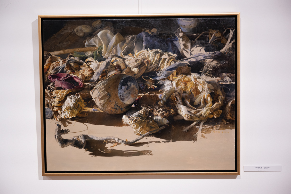 Emlékeztetett a középkori művészek aprólékos, nagy műgondú alkotásaira, azokra az attribútumokra, amelyek megjelentek a tizenhetedik század körül a csendéletek kibontakozásakor.