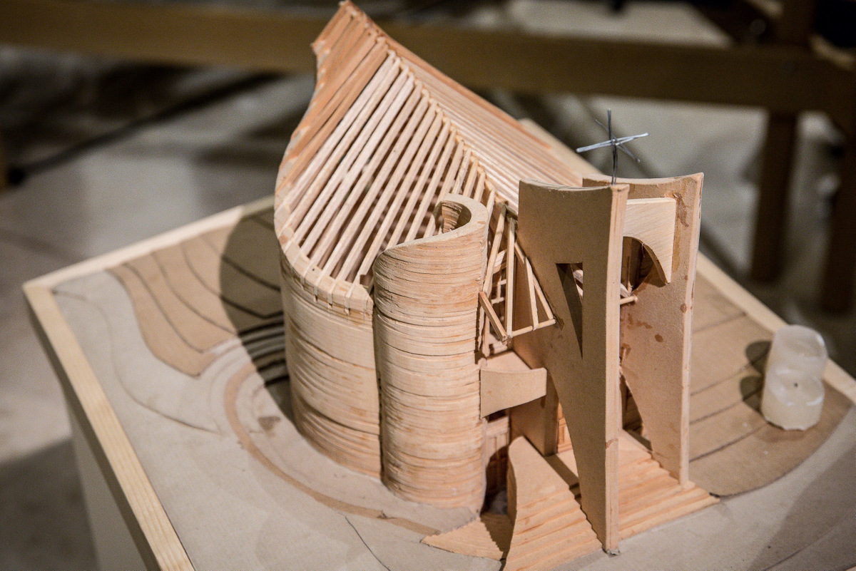 A másik egy természeti környezetbe épített épület, amivel utalok arra, hogy az építész magatartása a környezetéhez képest mennyire befolyásolja a környezetét és az mennyire változik. A harmadik egy értékes történeti környezetbe helyezett épület. Egészen pontosan egy műemlékbe helyezett épület, ami a meglévő örökségünk továbbélésére, továbbfejlesztésére tesz javaslatot. A negyedik épület pedig egy templom. Egy katolikus templom, amelyik a maga tiszta funkciójával, illetve pontosabban a funkciótlanságával minden építész álma. Mindenki szeretne egyszer egy ilyen épületet is tervezni, amelyben saját tervét is megvalósíthatja.