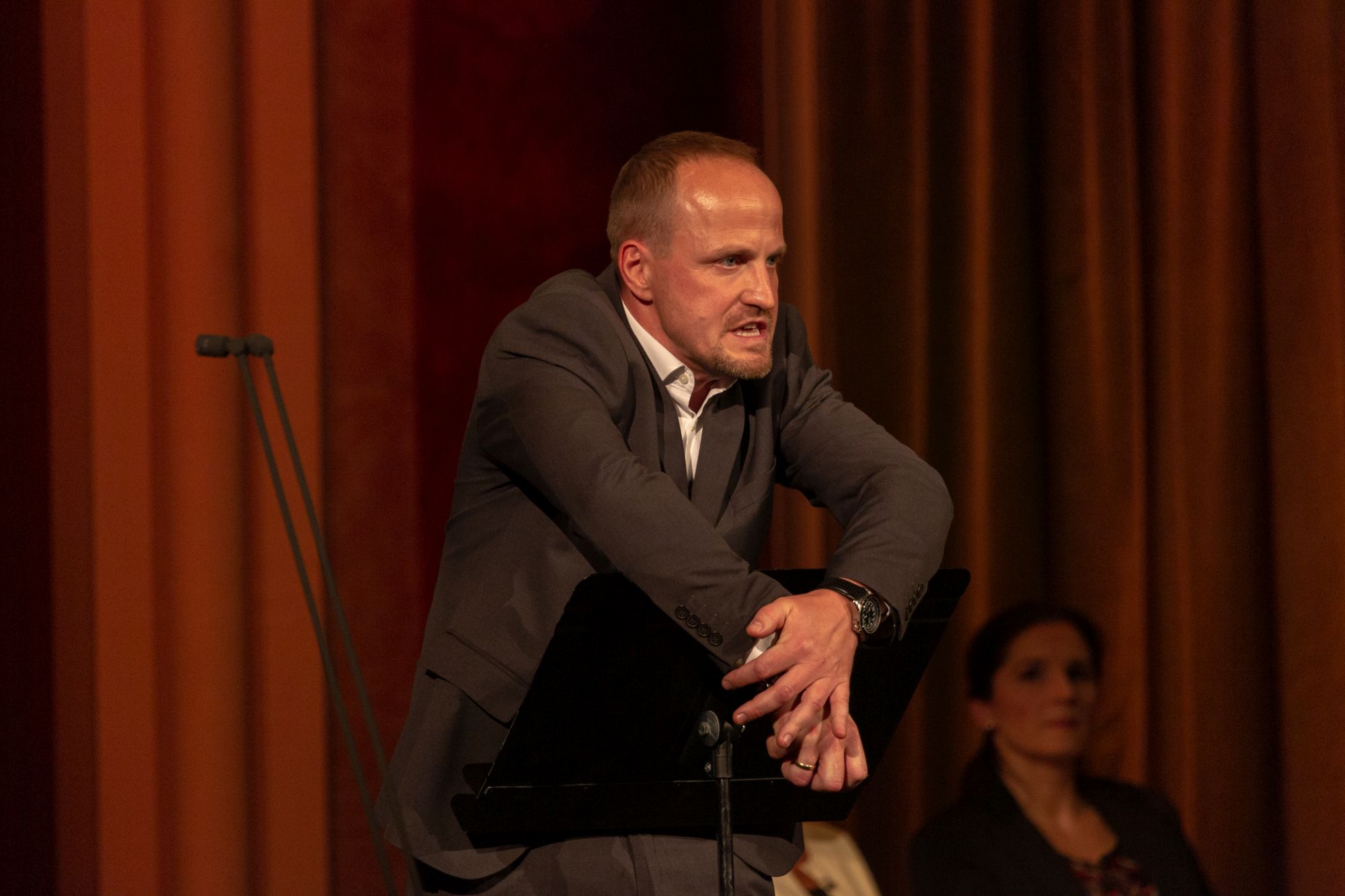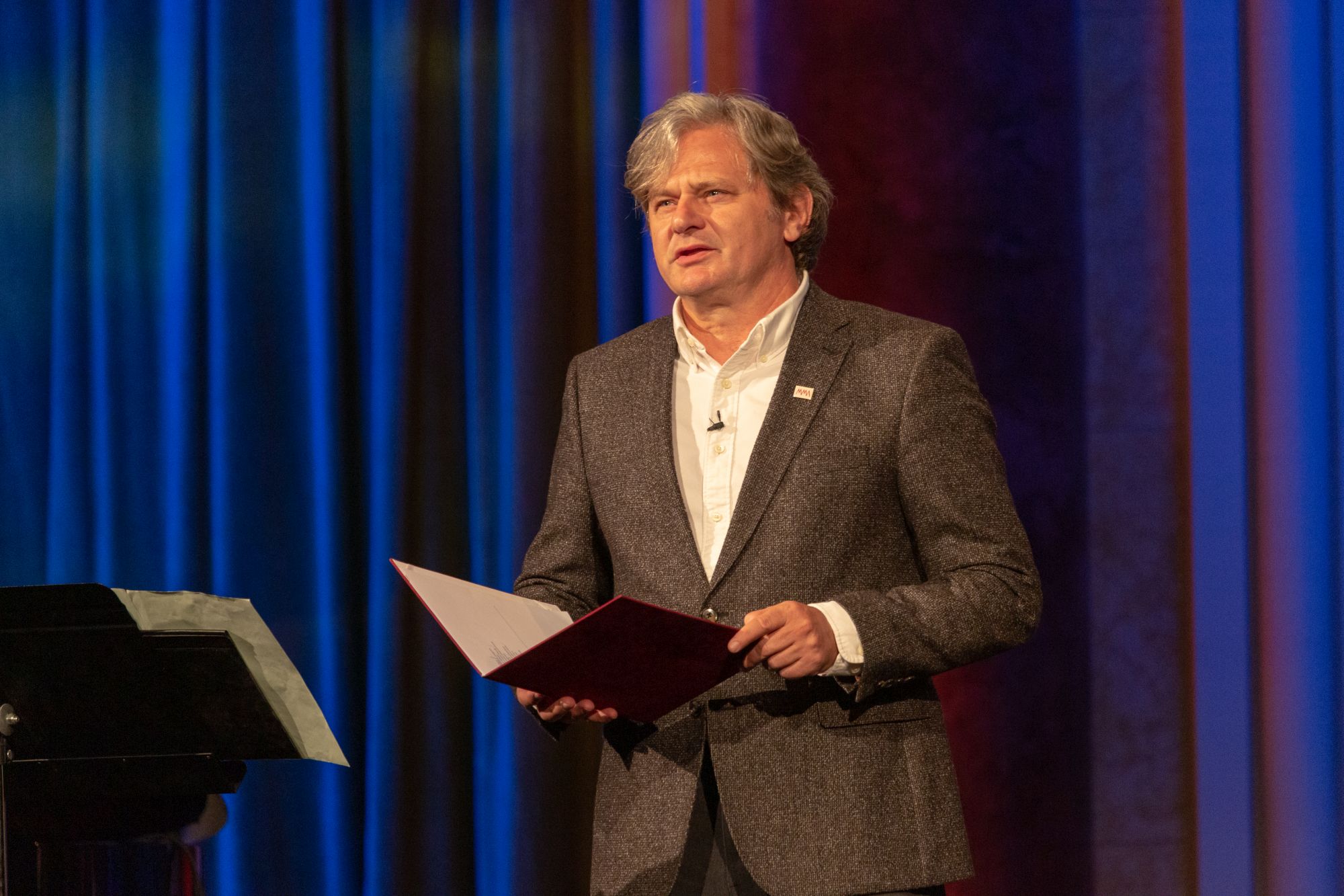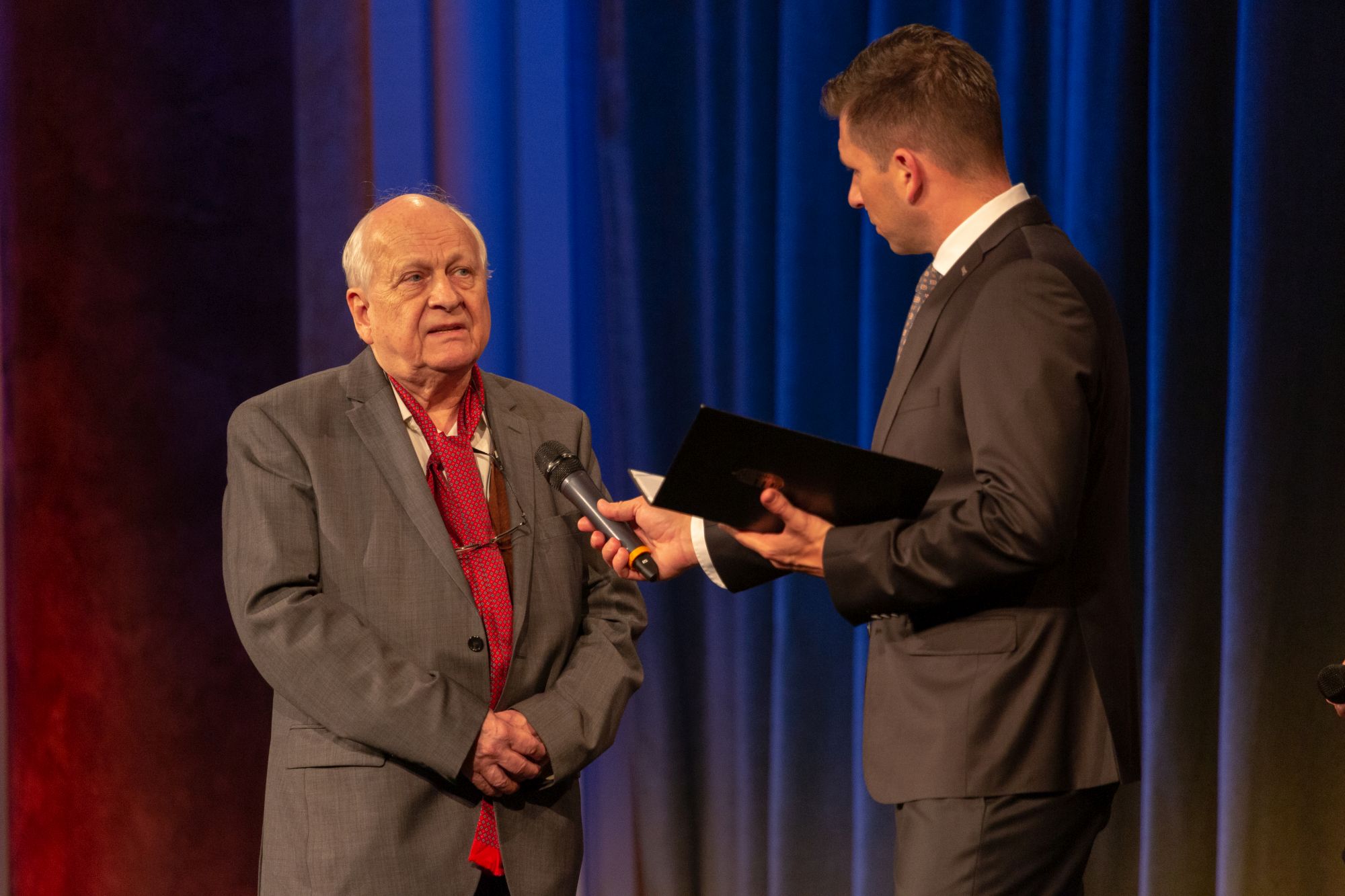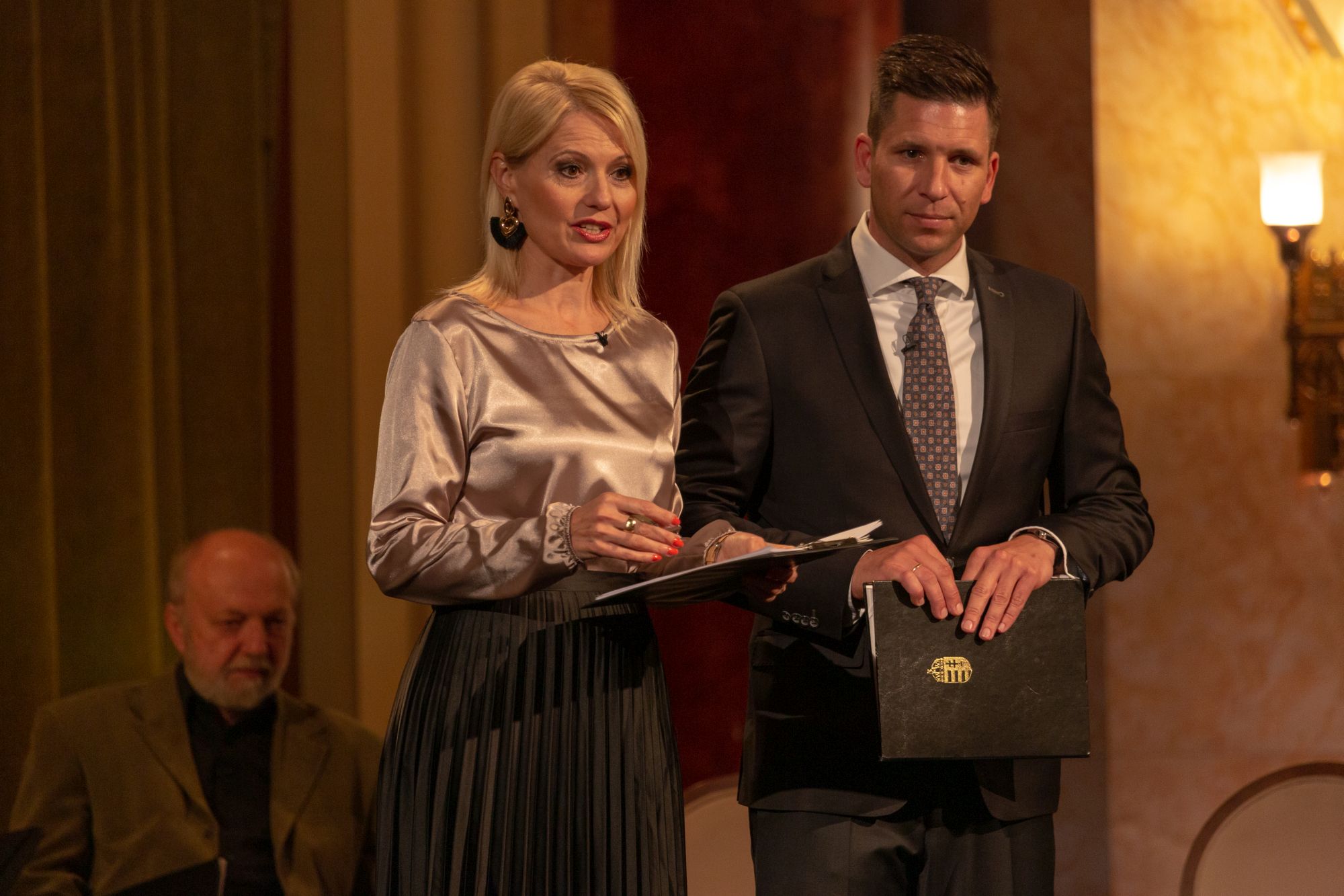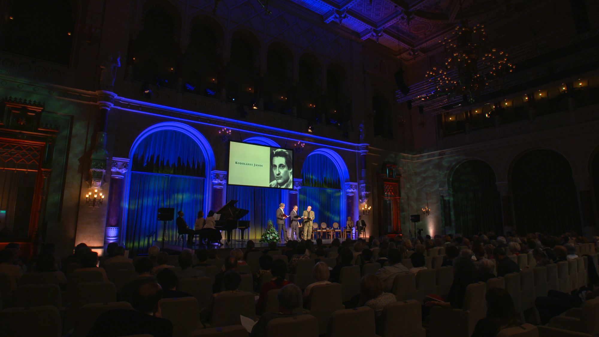 A következő művész is már csak a verseivel volt a közönséggel. Kányádi Sándor 2018. június 20-án hunyt el. Ha élne, most lenne 90 éves. A Kossuth-díjas költő sokak kedvence, az erdélyi Nagygalambfalván született. Kányádi egész életében járta a Kárpát-medence magyar falvait és kereste a kapcsolatot felnőttekkel és gyerekekkel egyaránt. Generációk nőttek fel a versein, amelyeket sokan meg is zenésítettek. (A Kaláka együttes Kányádi-estjén például mindig garantált a telt ház, legutóbb május 8-án szintén itt a díszteremben emlékeztek meg a költőről a Magyar Művészeti Akadémia által támogatott koncerten, Vannak vidékek című műsorukkal.) Az irodalmi gálán elhangzott költeményei között a „Valaki jár a fák hegyén"című mára legendássá vált.