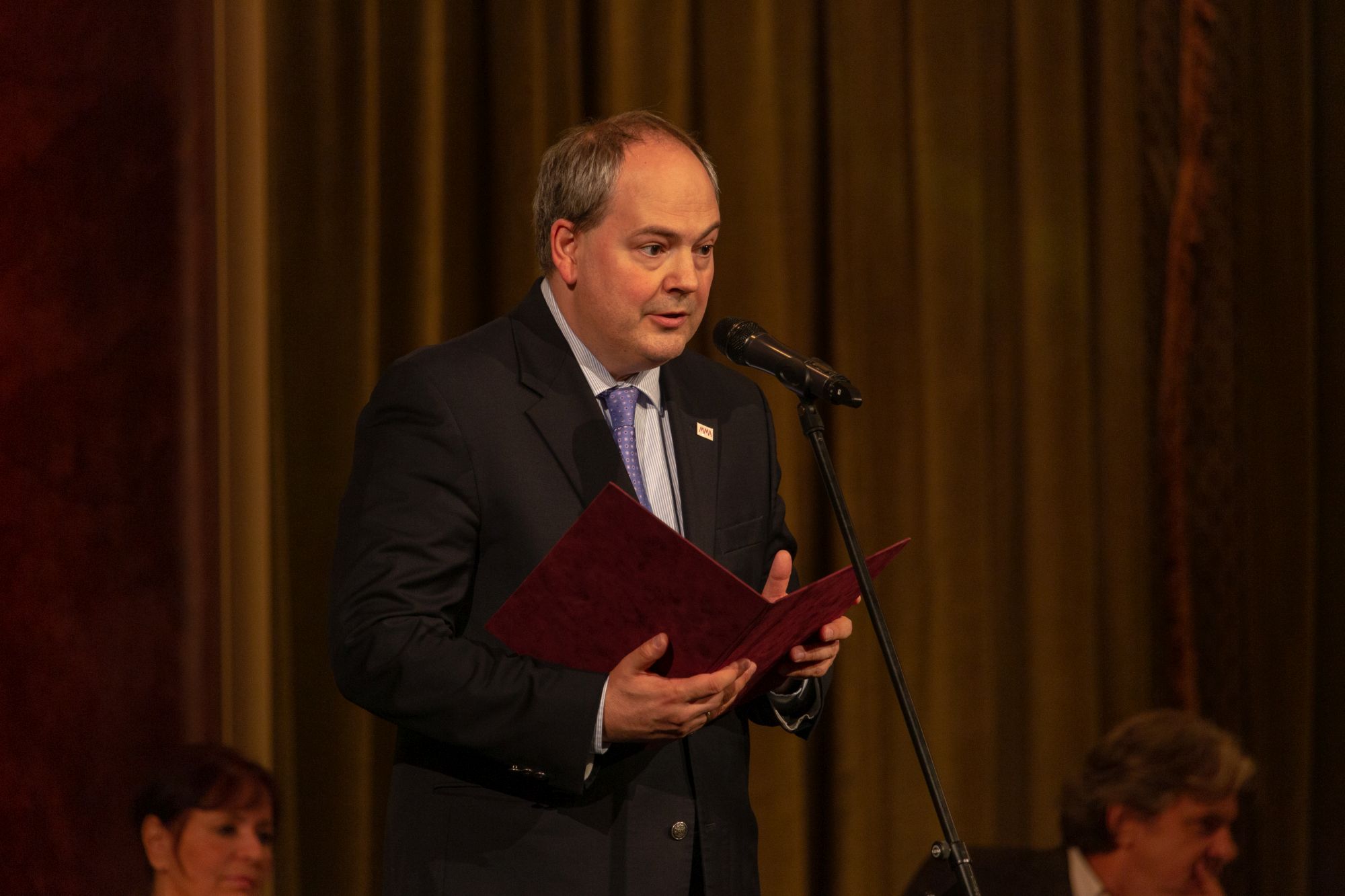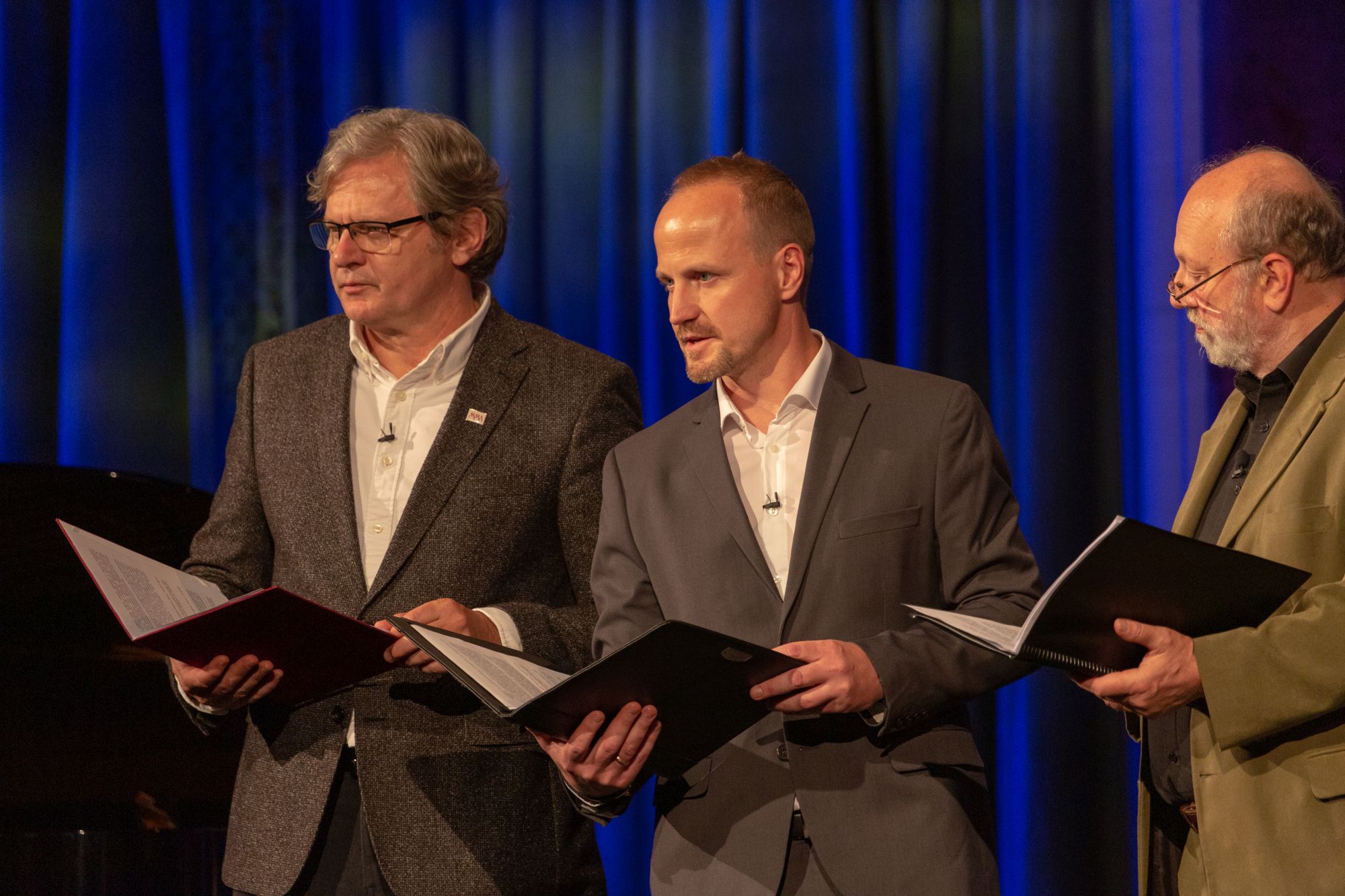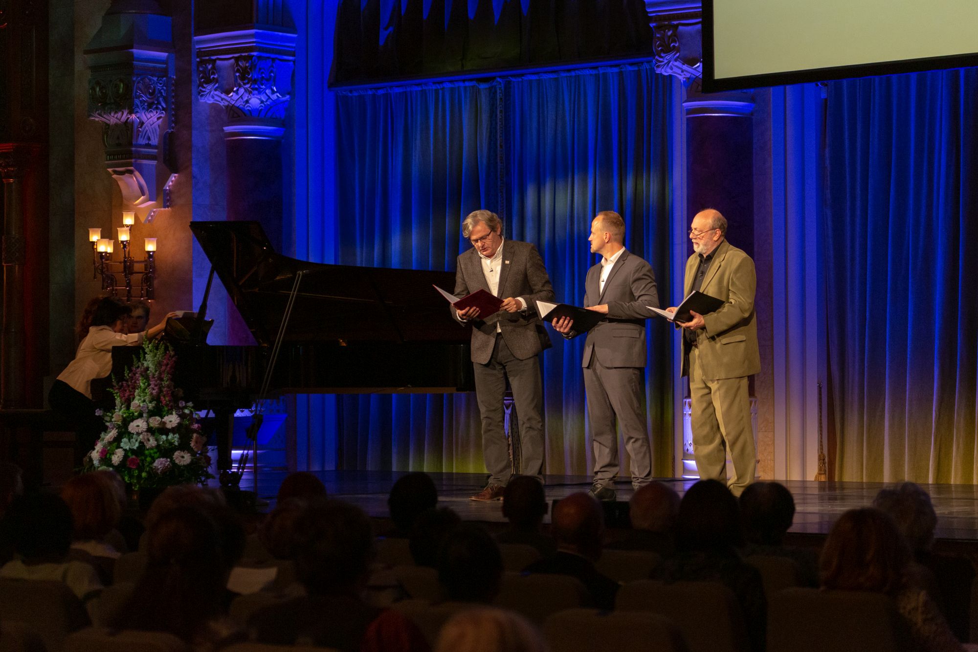 Az első részben Albert Gáborra emlékeztek. A Kossuth- és József Attila-díjas író Egyházasharasztiban született 1929-ben, vagyis 90 évvel ezelőtt. Albert Gábor 1988-ban több más értelmiségivel együtt megalapította a Magyar Protestáns Közművelődési Egyesületet, amelynek elnöke is volt. A nagy prózaíró és esszéista több rangos irodalmi folyóiratban is írt és több önálló kötete is megjelent. Egész életművével a XX. századi magyar sors megpróbáltatásai felé fordult és példamutató emlékezéseket mutatott fel a következő nemzedék számára. Albert Gábor: Ahol nincs című művét idézték részletekkel, majd Kodály Zoltán: A csitári hegyek alatt és Terényi Ede, az MMA tagja: Amor Sanctus ciklusból „Haec quale facis o mi Deus!" című művét Hajdú Zsuzsanna énekművész és Nagy Márta zongoraművész adták elő.