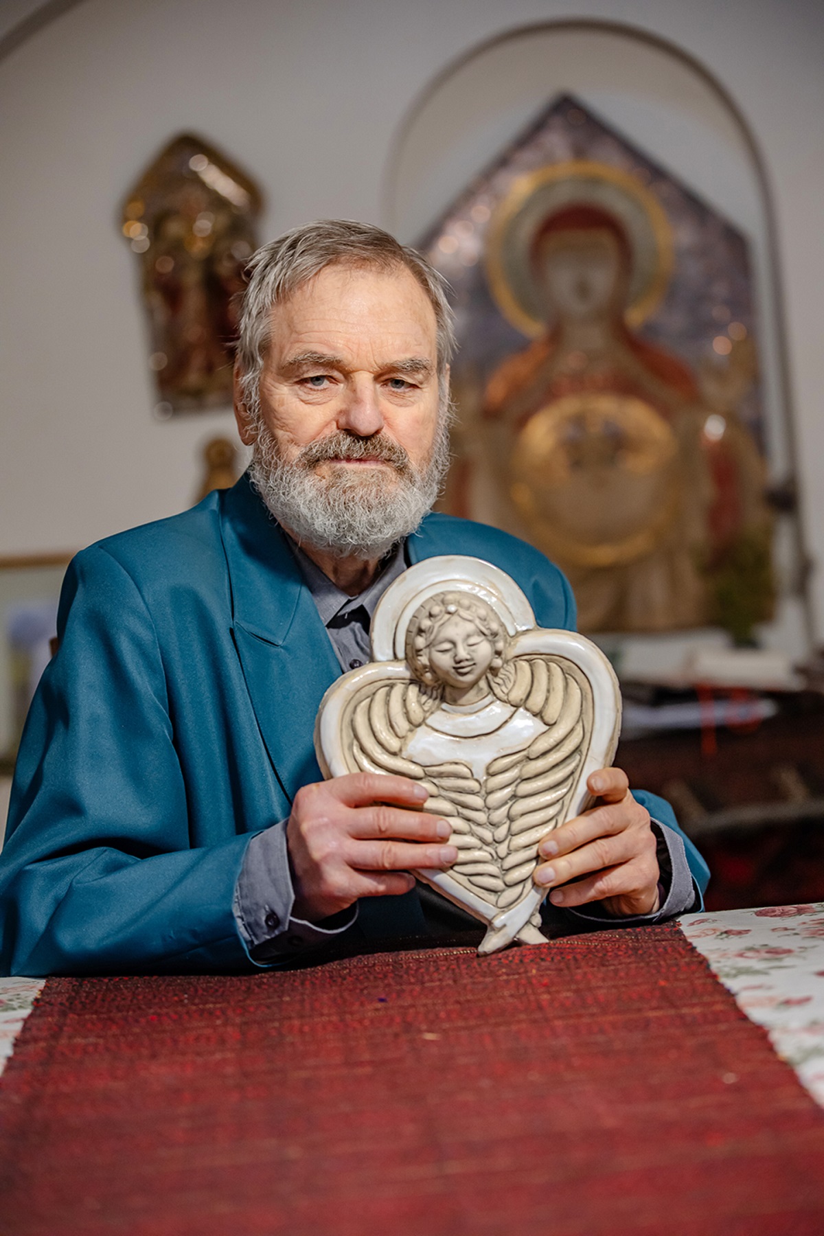– A kertben felesége, Petrás Mária angyalszobrai vigyáznak önökre. Itt bent is körül van véve angyalokkal.