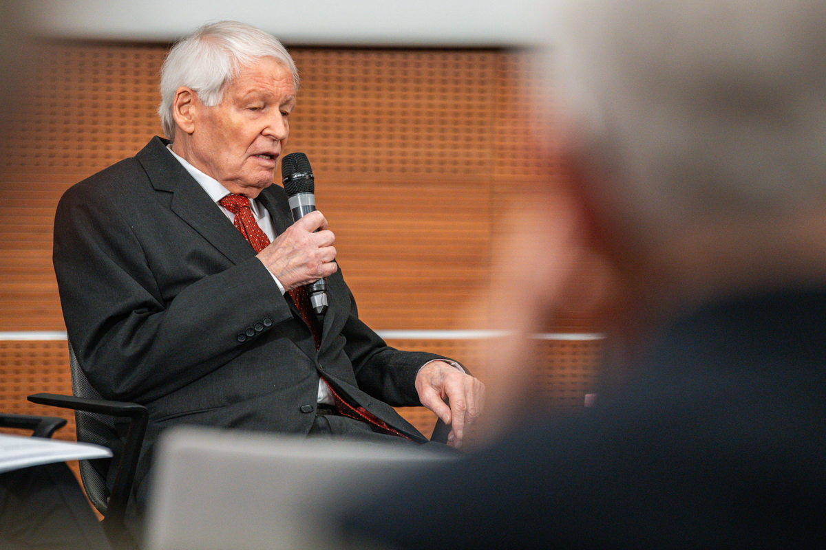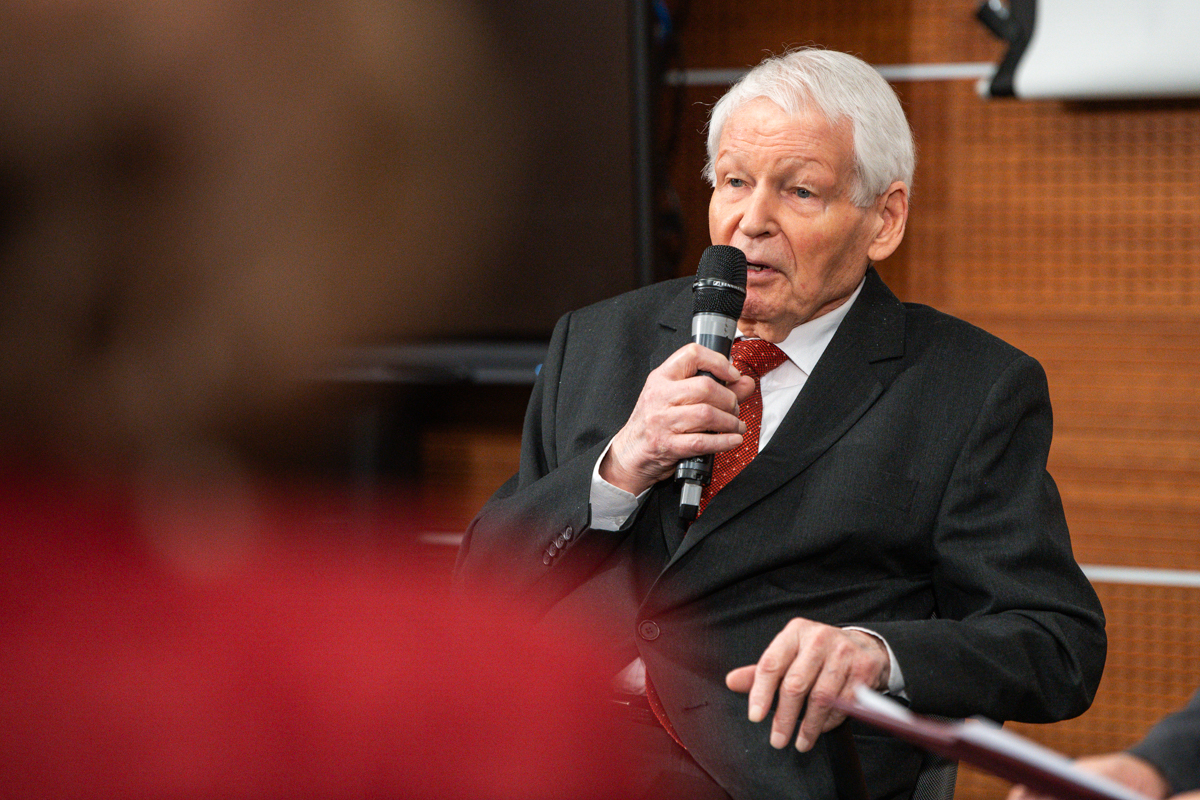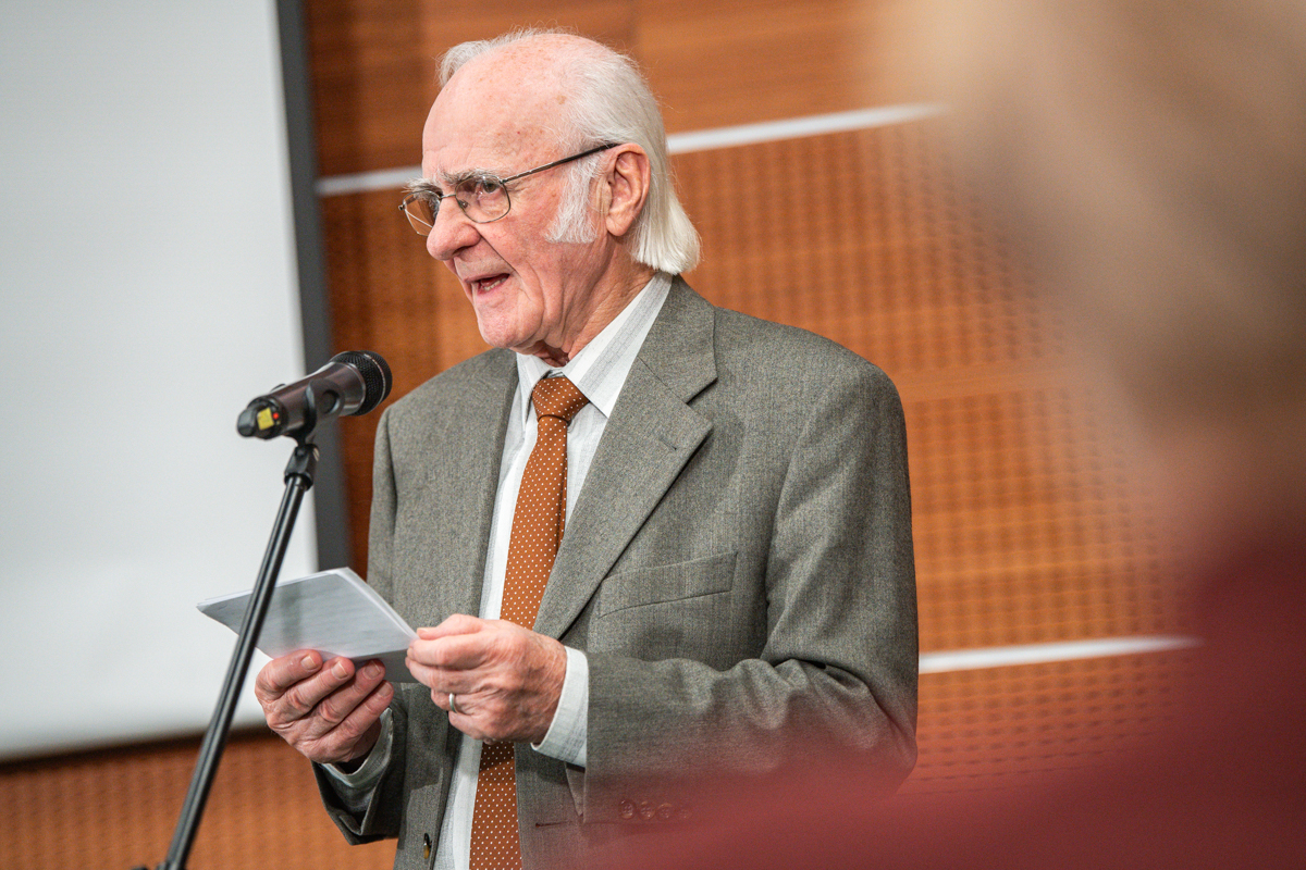A kilencvenéves Konrad Sutarski köszöntése az MMA Irodalmi Tagozatának Élőfolyóirat estjén