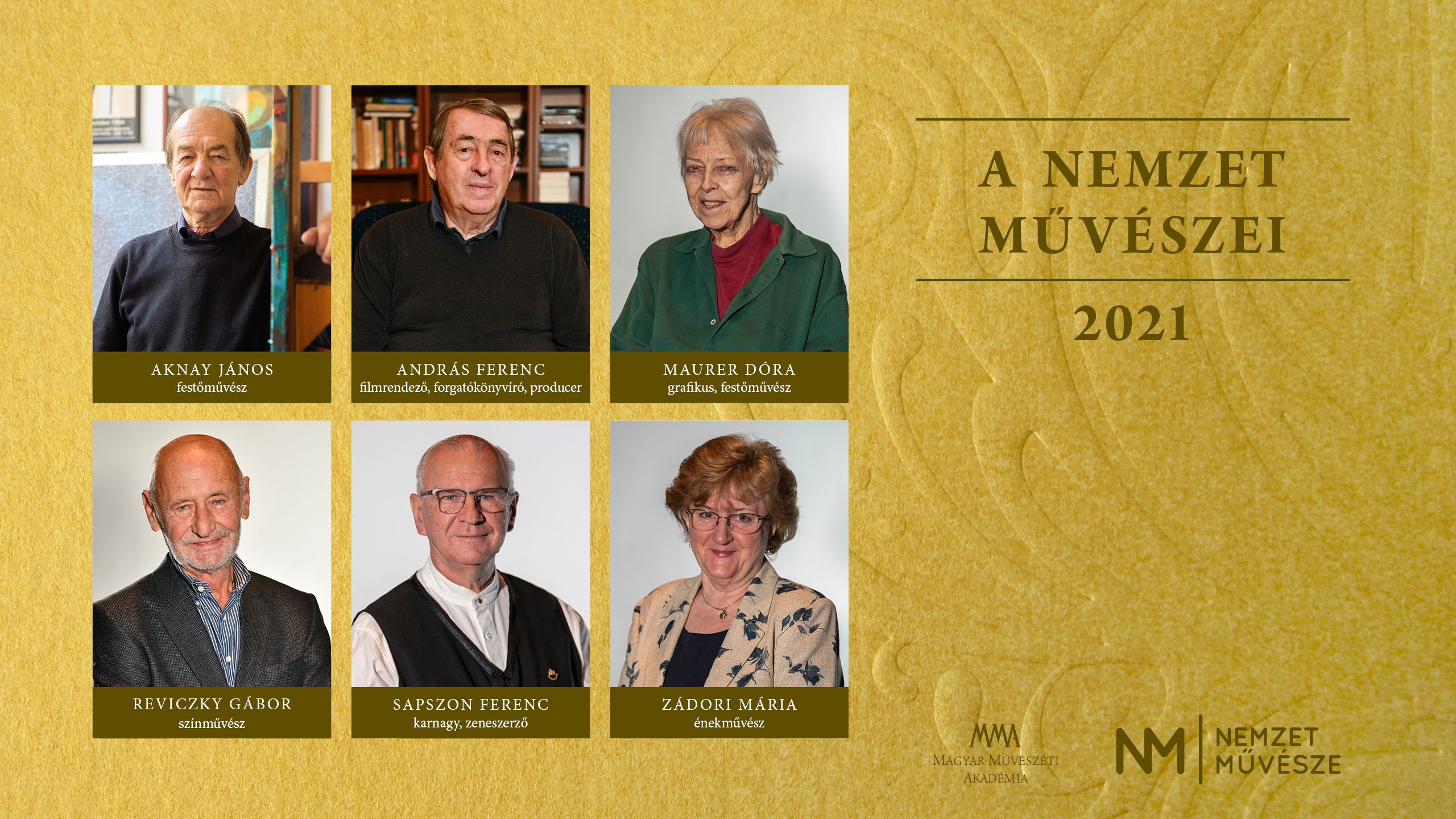 2021-ben hat művész nyerte el a legrangosabb magyarországi művészeti elismerésnek számító Nemzet Művésze díjat, amelyet a díjazottak a tavalyi év kitüntetettjeivel együtt vehettek át a Magyar Művészeti Akadémia székházában, a Pesti Vigadóban. A Nemzet Művésze díj Bizottság Aknay János festőművésznek, András Ferenc filmrendezőnek, Maurer Dóra grafikus-festőművésznek, Reviczky Gábor színművésznek, Sapszon Ferenc karnagynak, zeneszerzőnek és Zádori Mária énekművésznek ítélte oda az elismerést. Kásler Miklós, az emberi erőforrások minisztere a díjátadón hangsúlyozta: a magyar kultúra több gyökérből táplálkozik és ez adja a sokszínűségét. "Önök ennek a kultúrának a képviselői, akik értékteremtő tevékenységükkel idolokká, példaképpé váltak" – méltatta a díjazottakat.