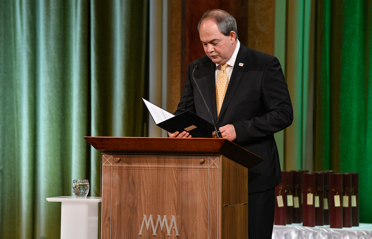 Vashegyi György, a Magyar Művészeti Akadémia elnöke köszöntőjében emlékeztetett arra, hogy a Magyar Művészeti Akadémia születésének 10 éves évfordulóján boldog embereket köszönthetünk, akik aktív szellemi munka árán számos alkalommal felemelő pillanatokhoz jutottak művészetük, intuícióik és szorgalmuk által, és ezekből a pillanatokból, mi befogadók is részesülhettünk. A Magyar Művészeti Akadémia kezdeményezésére – 2013-ban – az Országgyűlés a magyar művészeti élet kimagasló teljesítményt nyújtó, elismert képviselőinek személyes megbecsülése, méltó életkörülményeinek biztosítása céljából alapította a Nemzet Művésze díjat, amely a legrangosabb hazai művészeti elismerés, és amelyet 2014-ben ítélt oda első alkalommal a díj Bizottsága. A nemzet művészei egy időben legfeljebb 70-en lehetnek. A díjat minden évben a Magyar Művészeti Akadémia köztestület „születésnapján", november 5-én adják át.