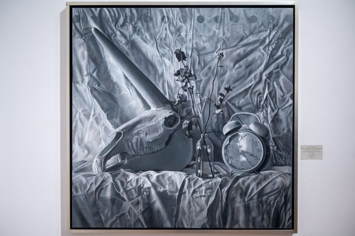 Grezsa Csaba főkonzul köszöntő beszédében úgy fogalmazott, a tárlat címe - Omnis rerum memoria - az elmúlásra, az időhöz való viszonyra emlékeztet. "Valahogy úgy tekintünk sokszor a történelemre, meg mindenféle memóriára, mint olyan dologra, ami lezárult, már nem módosítható, nem a miénk, vagy ha a miénk is, akkor már csak az emlékeinkben" - mutatott rá. Hozzátette, a művészet, műalkotás révén ki lehet lépni ebből "az időbeli meghatározottságból". Milan Kundera Halhatatlanság című regényére is utalva kifejtette: bár az elmúlás fölött nincs hatalmunk, a művészet időtlenségébe, időtől való függetlenségébe beleszólásunk lehet.