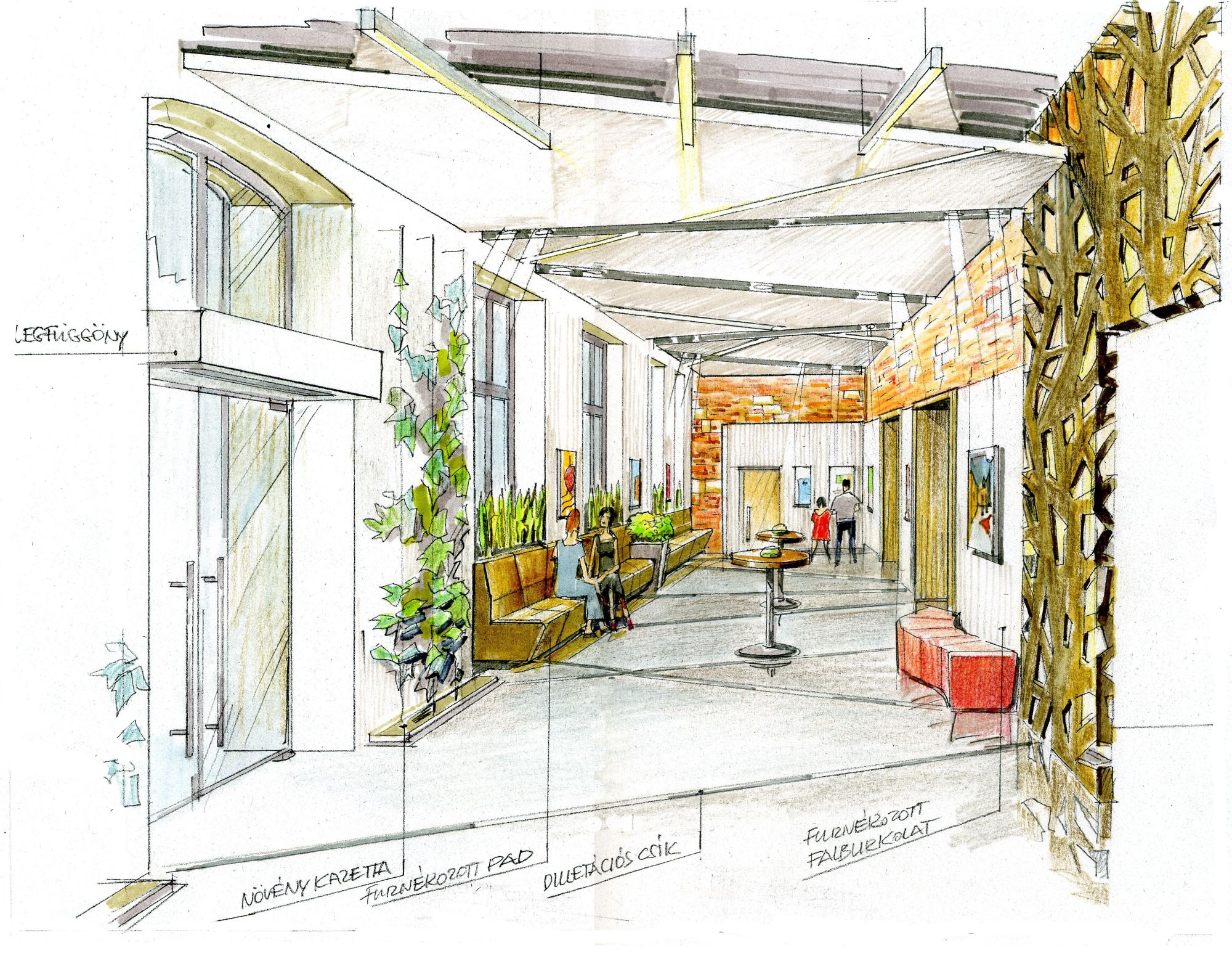 A rajz a kreatív elme gondolatainak papírra rögzítése. Ezen belül a belsőépítész-tervező rajzi eszköz és léptékskálája a legszélesebb az összes tervezőművészet közül. Nagysága és változatossága az építészeti belső tér megragadásától, a kézbefogható tárgyak megjelenítéséig terjed. Ez egyben kijelöli összekötő szerepét is, amit az építészet és a tárgyvilág között betölt. Életterünk meghatározó formálója a belsőépítész. Az általa rajzolt kézi rajzon keresztül mutatja meg elképzeléseit, a megálmodott tér atmoszféráját, amely minden esetben egy-egy önálló egyéniséget felmutató alkotó egyedi kézlenyomata. Ebbe az alkotói folyamatba pillanthatunk be közel hatvan alkotó rajzain keresztül, a most megrendezésre kerülő Téralakítás szabad kézzel című kiállításon. A belsőépítész közösség ezzel a kiállítással járul hozzá a magyar építő- művészet kulturális örökségéhez.