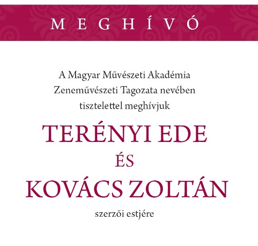 A Magyar Művészeti Akadémia Zeneművészeti Tagozata nevében tisztelettel meghívjuk Terényi Ede zeneszerző, zenetudós és Kovács Zoltán zeneszerző szerzői estjére.
