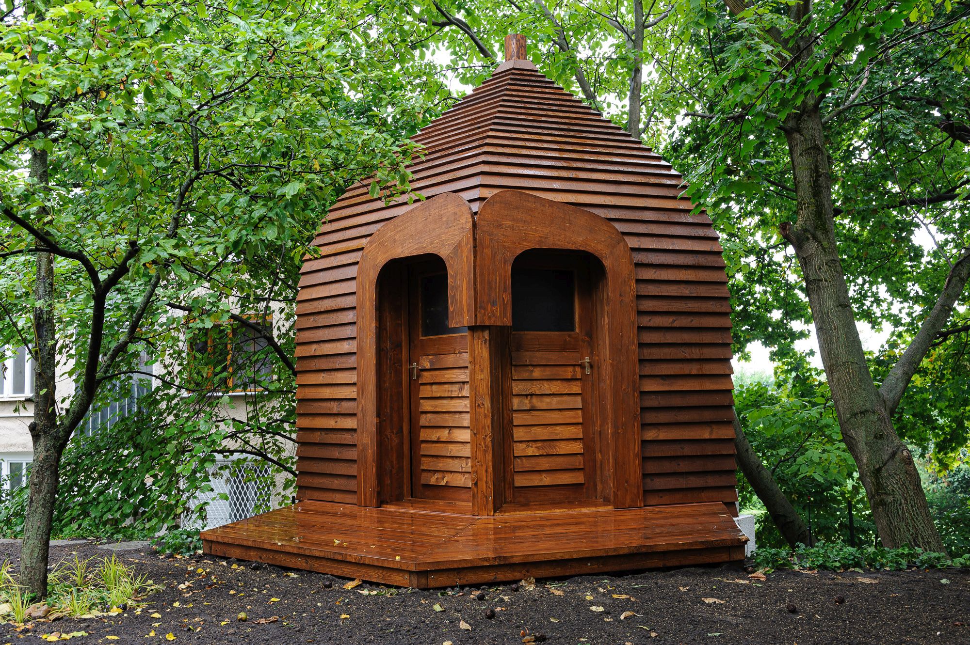 Makovecz Imre első, restaurált faépülete, amely műtárgyként a Makovecz Ház kertjében kapott helyet [fotó: Makovecz Imre Alapítvány]