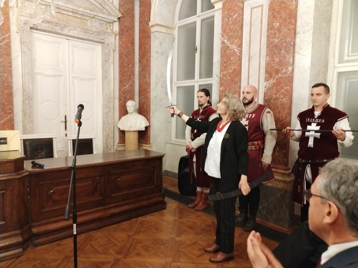 Zalán Tibor Balassi-kardos poéta mondott laudációt a magyar költőnőről. Kiemelte, hogy Tóth Erzsébet az irodalmi nagyszerűsége mellett bátorságával is feltűnik a magyar irodalmi életben. Martos Levente Balázs segédpüspök, a Központi Papnevelő Intézet rektora nyújtotta át a kardot Tóth Erzsébetnek.