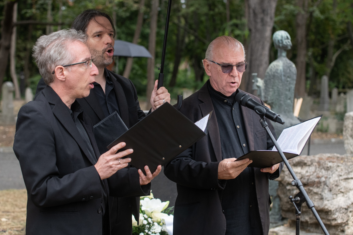 A jelenlévők Maczkó Mária, az MMA köztestületi tagjának énekével emlékezhettek az elhunytra.